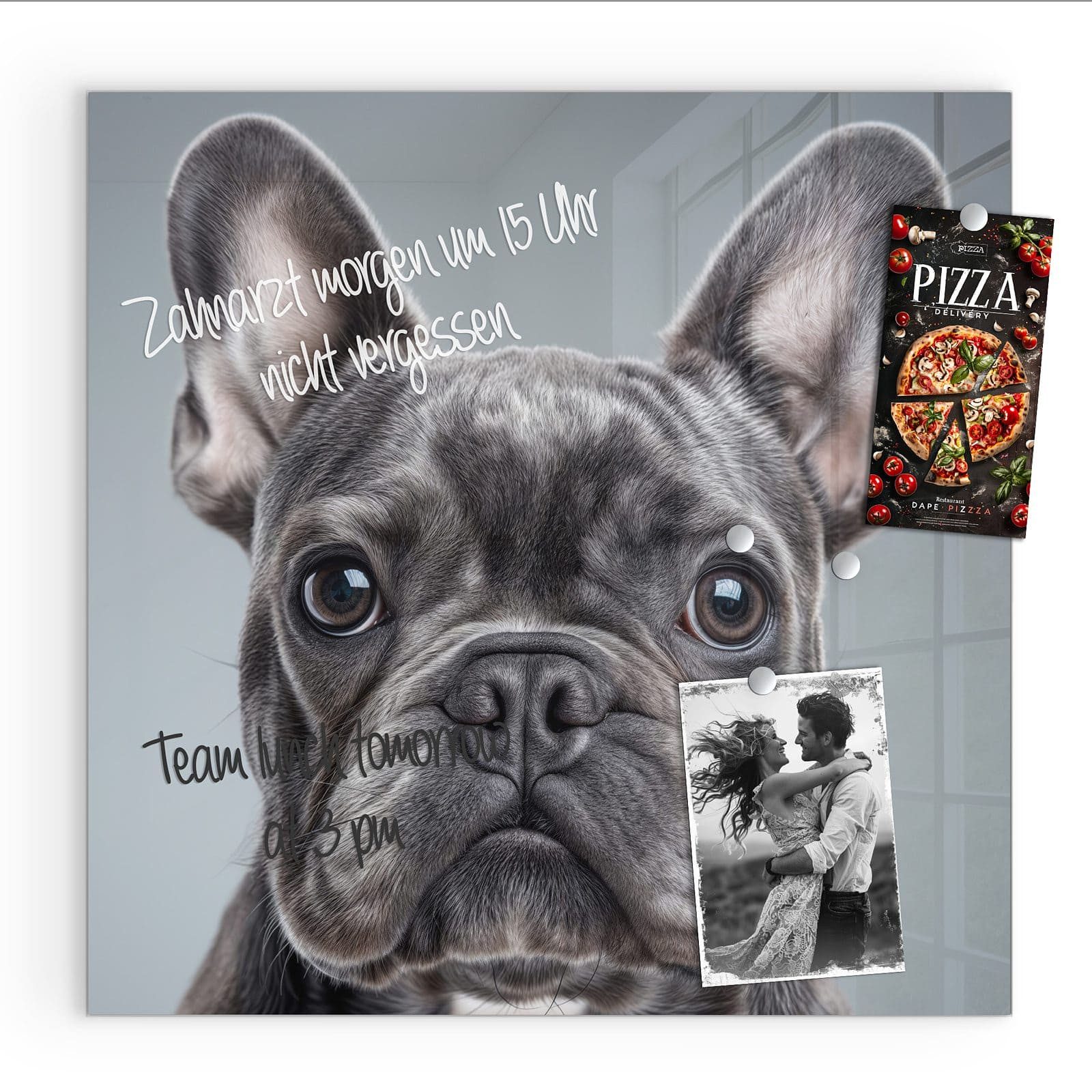 Mit einer Розмір von 30x30 cm ist diese Magnetpinnwand mit dem Motiv Französische Bulldogge die ideale Lösung für Ihre Notizen, Fotos oder als dekoratives Element in Ihrem Zuhause. Die rückseitigen Ausbuchtungen sorgen für einen eleganten Schwebeeffekt, der den Raum optisch aufwertet.