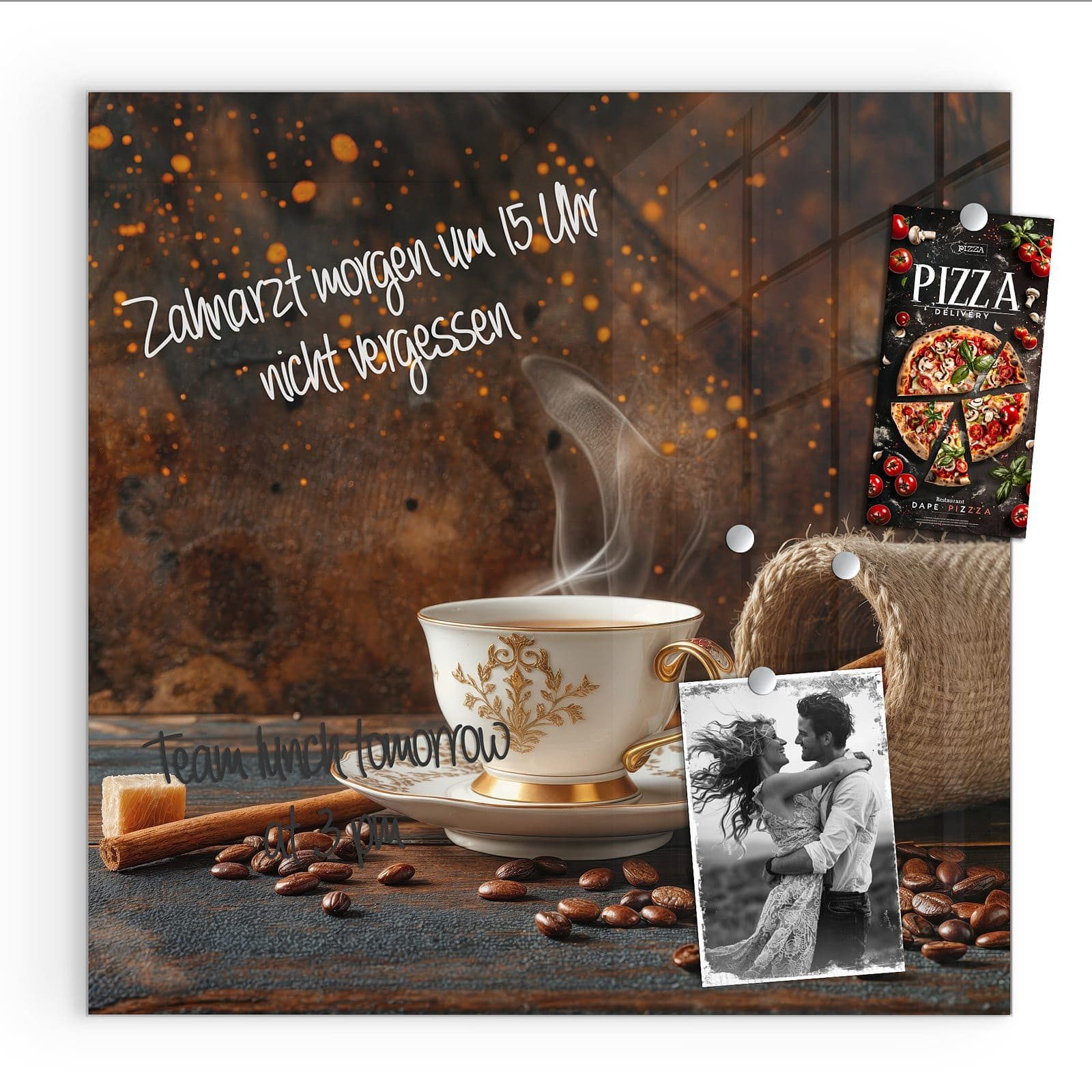 Mit einer Розмір von 30x30 cm ist diese Magnetpinnwand mit dem Motiv Kaffee Und Zimt die ideale Lösung für Ihre Notizen, Fotos oder als dekoratives Element in Ihrem Zuhause. Die rückseitigen Ausbuchtungen sorgen für einen eleganten Schwebeeffekt, der den Raum optisch aufwertet.