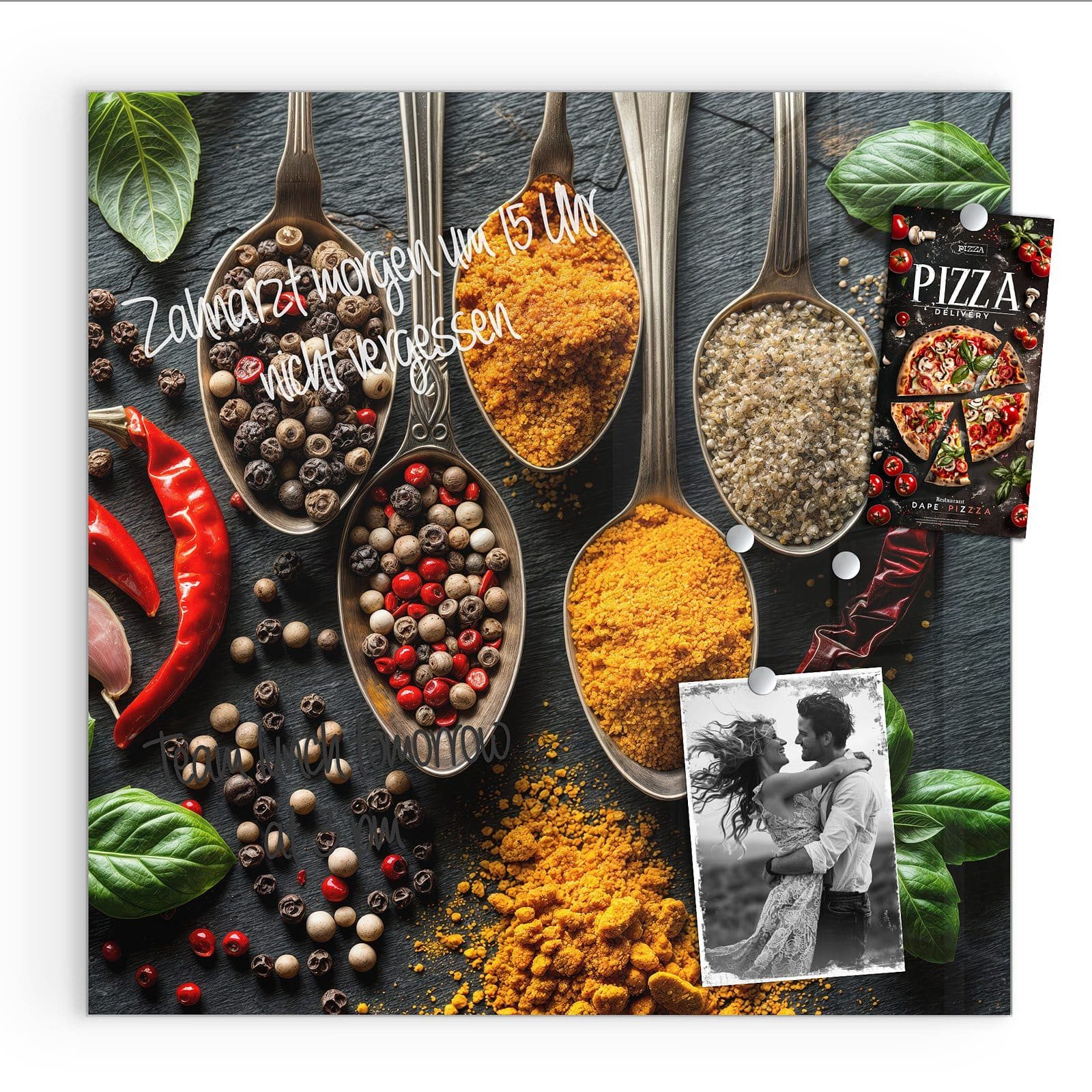 Mit einer Розмір von 30x30 cm ist diese Magnetpinnwand mit dem Motiv Küchengewürze die ideale Lösung für Ihre Notizen, Fotos oder als dekoratives Element in Ihrem Zuhause. Die rückseitigen Ausbuchtungen sorgen für einen eleganten Schwebeeffekt, der den Raum optisch aufwertet.