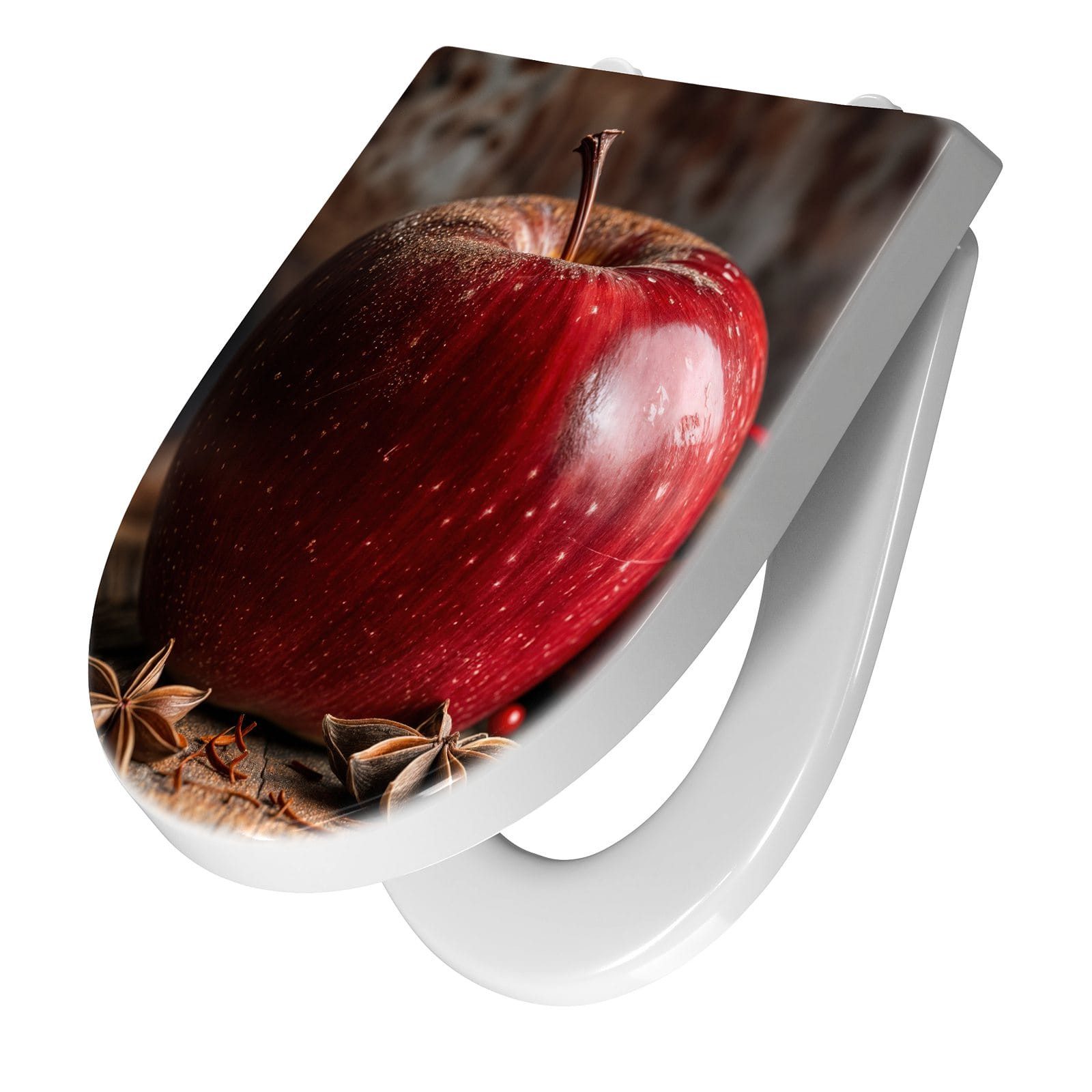 Ein besonderes Highlight ist das brillante Motiv Apfel mit Zimt, das per UV-Direktdruck auf den WC-Deckel aufgebracht ist. Diese langlebige Drucktechnik sorgt für eine kratzfeste, farbintensive Oberfläche, die auch nach häufigem Gebrauch optisch überzeugt. Dank unserer großen Auswahl an Motiven setzen Sie mit jedem Sitz ein individuelles Design-Statement im Bad.