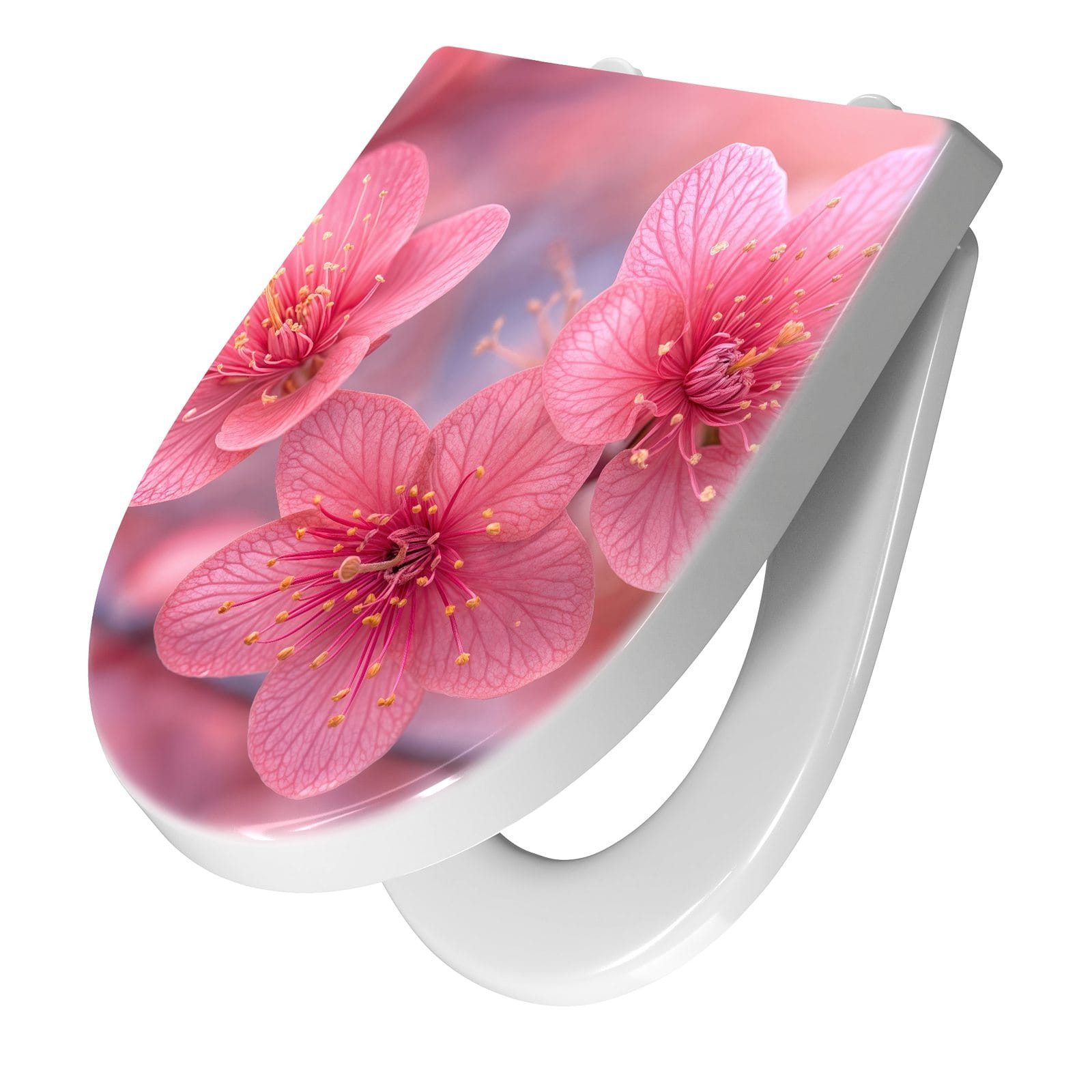 Ein besonderes Highlight ist das brillante Motiv Blütenzauber, das per UV-Direktdruck auf den WC-Deckel aufgebracht ist. Diese langlebige Drucktechnik sorgt für eine kratzfeste, farbintensive Oberfläche, die auch nach häufigem Gebrauch optisch überzeugt. Dank unserer großen Auswahl an Motiven setzen Sie mit jedem Sitz ein individuelles Design-Statement im Bad.