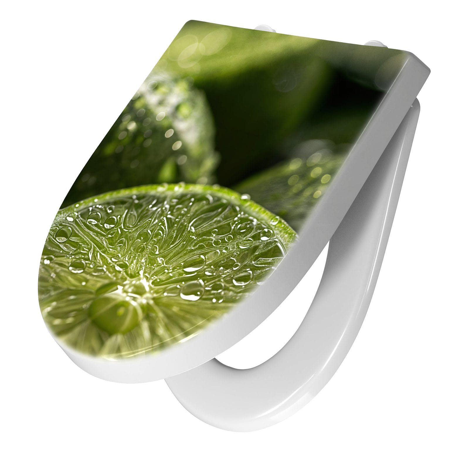 Ein besonderes Highlight ist das brillante Motiv Frische Limetten, das per UV-Direktdruck auf den WC-Deckel aufgebracht ist. Diese langlebige Drucktechnik sorgt für eine kratzfeste, farbintensive Oberfläche, die auch nach häufigem Gebrauch optisch überzeugt. Dank unserer großen Auswahl an Motiven setzen Sie mit jedem Sitz ein individuelles Design-Statement im Bad.