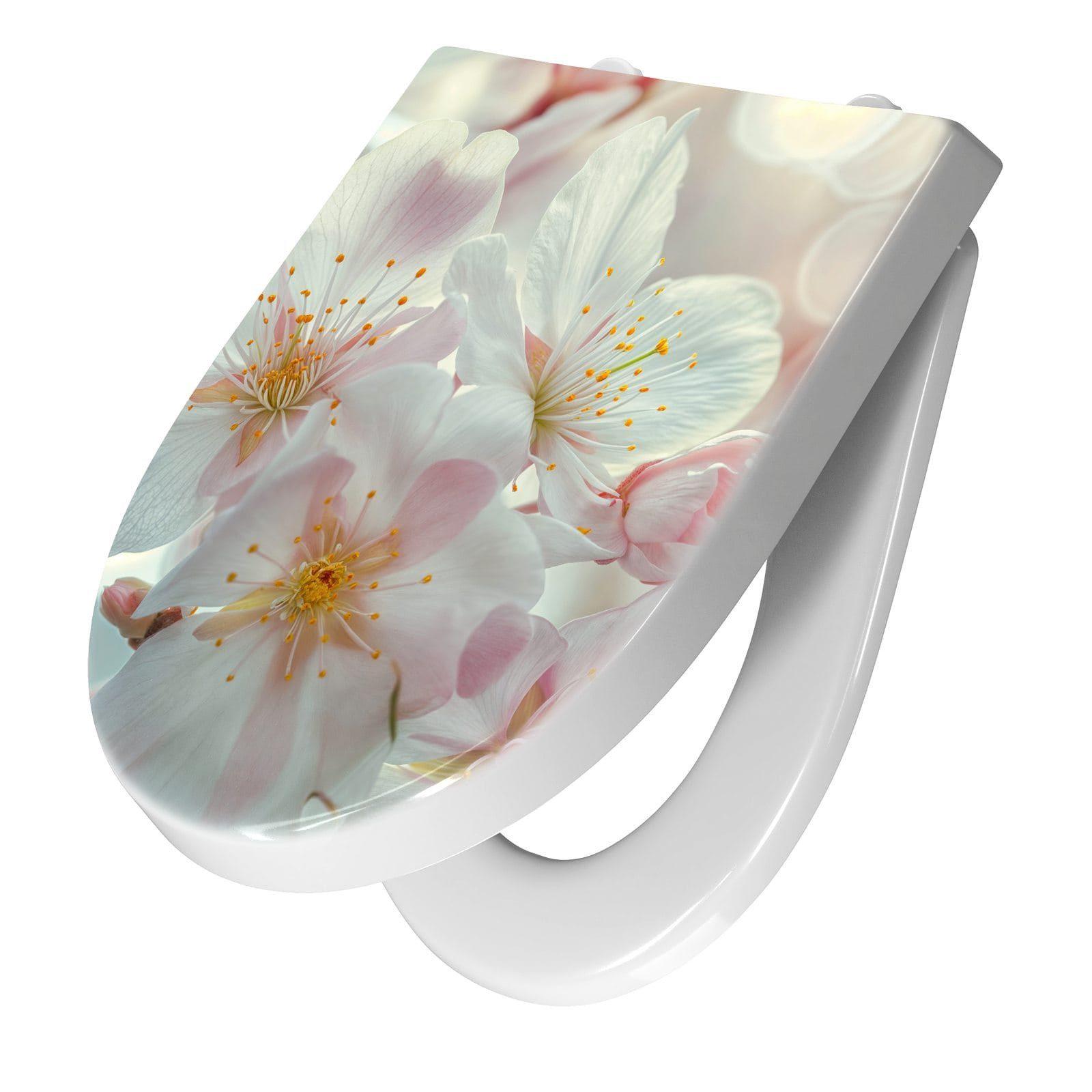 Ein besonderes Highlight ist das brillante Motiv Kirschblüten Zauber, das per UV-Direktdruck auf den WC-Deckel aufgebracht ist. Diese langlebige Drucktechnik sorgt für eine kratzfeste, farbintensive Oberfläche, die auch nach häufigem Gebrauch optisch überzeugt. Dank unserer großen Auswahl an Motiven setzen Sie mit jedem Sitz ein individuelles Design-Statement im Bad.