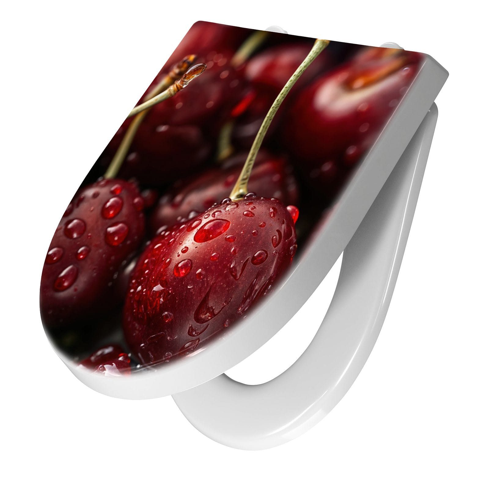Ein besonderes Highlight ist das brillante Motiv Reife Kirschen, das per UV-Direktdruck auf den WC-Deckel aufgebracht ist. Diese langlebige Drucktechnik sorgt für eine kratzfeste, farbintensive Oberfläche, die auch nach häufigem Gebrauch optisch überzeugt. Dank unserer großen Auswahl an Motiven setzen Sie mit jedem Sitz ein individuelles Design-Statement im Bad.