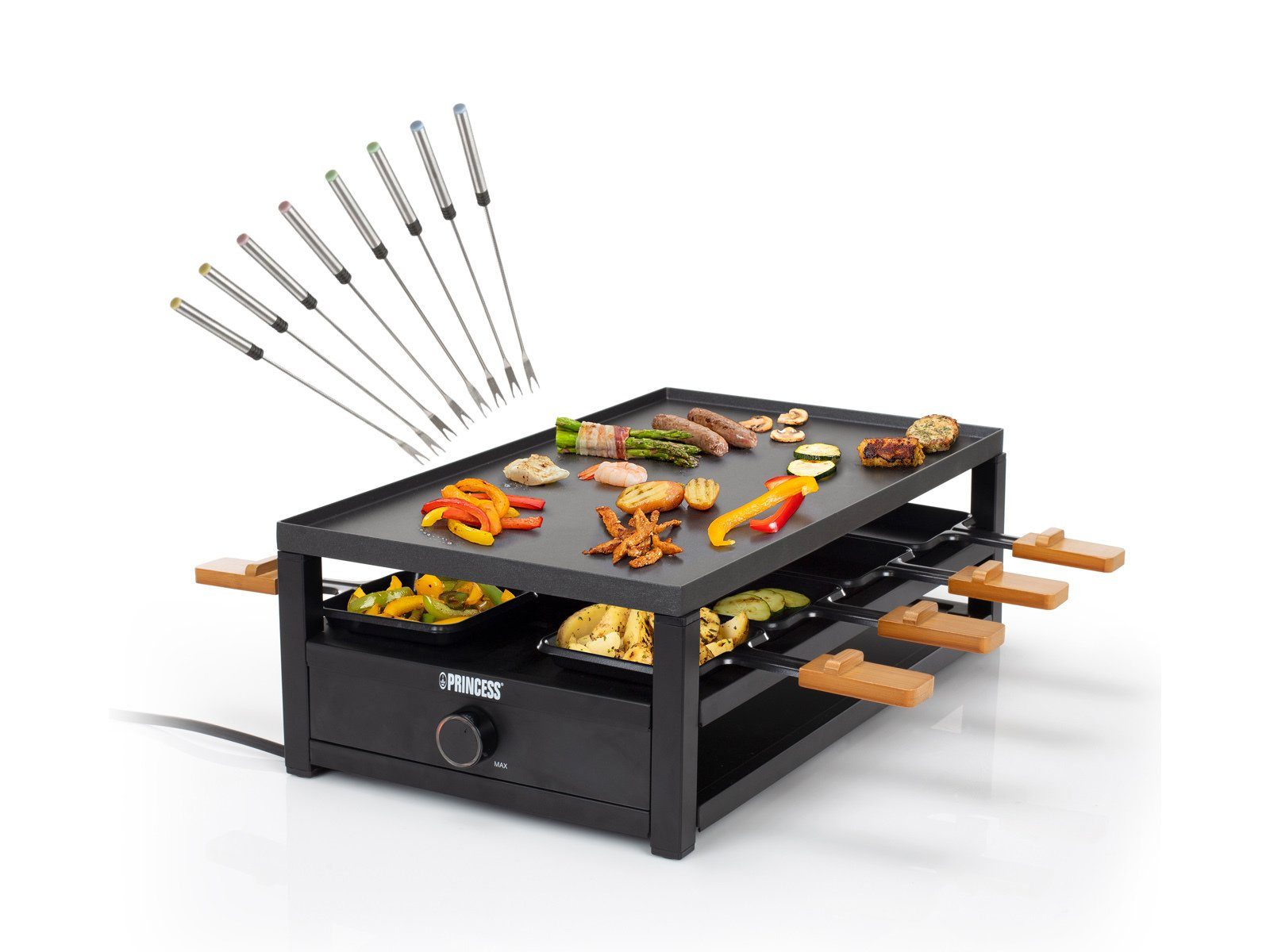 Zubereitungsmöglichkeiten | Wählen Sie Grillen, Raclette, Pizza oder alles auf einmal aus! |