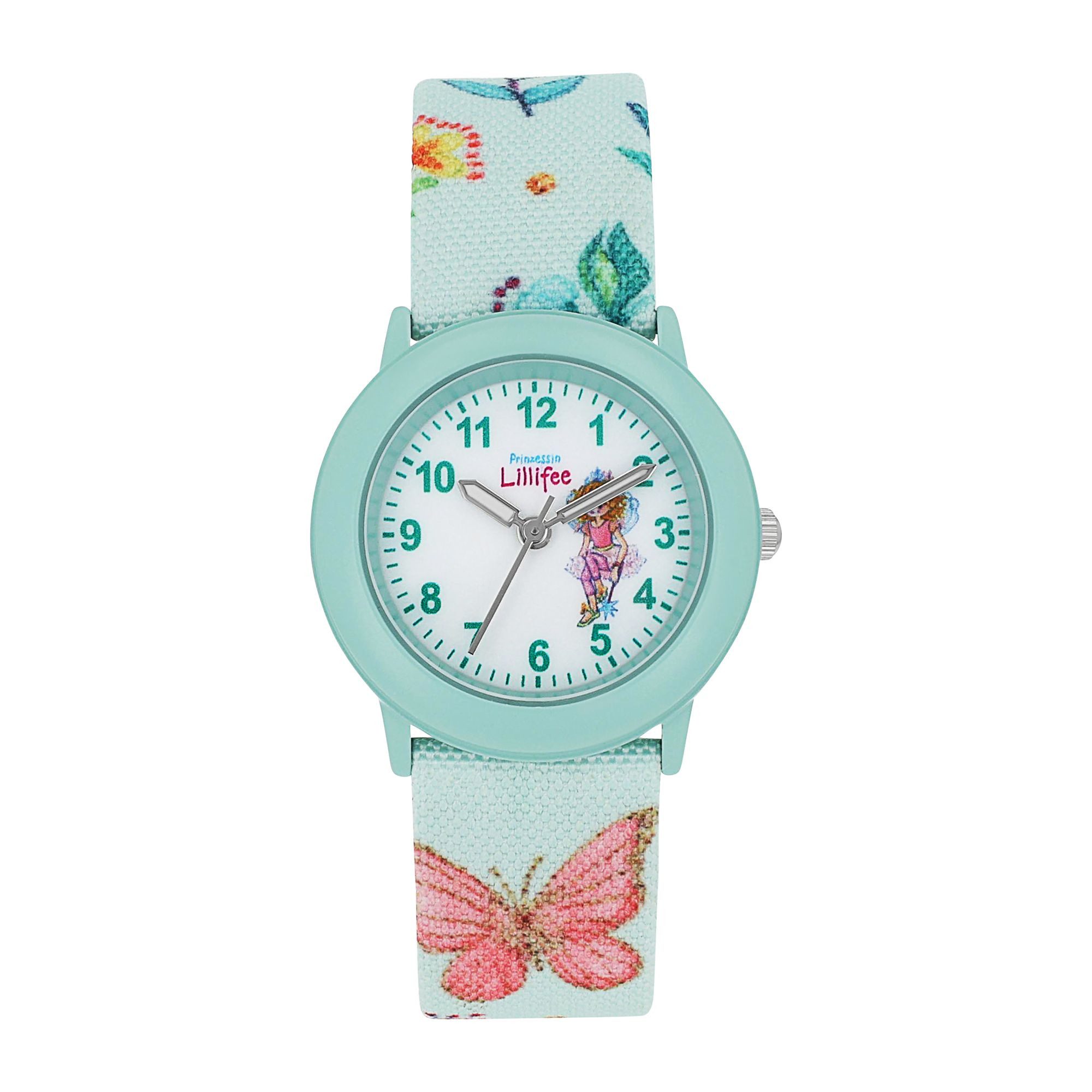 Willkommen in der Uhren Welt von Prinzessin Lillifee. Hier zeigen sich fröhliche Farben, bunte Motive und wichtiger Lernspaß für kleine Mädchen. Die perfekte Armbanduhr, die mitwächst und dabei den Gute-Laune-Faktor ans Outfit zaubert. Die Krone, die zum Stellen der Uhr dient, besteht aus Edelstahl. Das längenverstellbare Textilarmband mit Tier- und Naturmotiven überzeugt durch die einfache Handhabe der Dornschließe. Hiermit lässt sich die Довжина des Bands genau passend für das Handgelenk einstellen. Das kratzfeste Mineraglas schützt das fröhlich bunte Ziffernblatt, das die Zahlen deutlich inklusive Sekunden dazwischen anzeigt. Ein präzises Citizen Miyota Uhrwerk ist bis auf drei Bar wasserdicht und somit Spritzwassergeschützt.