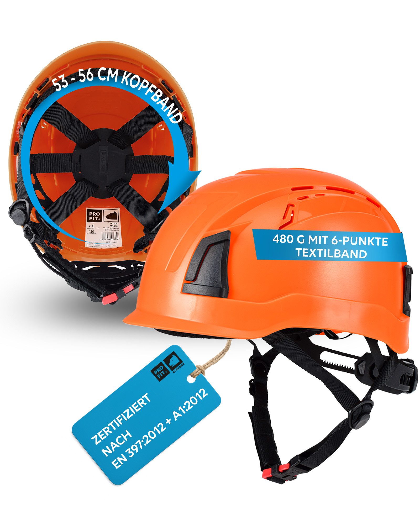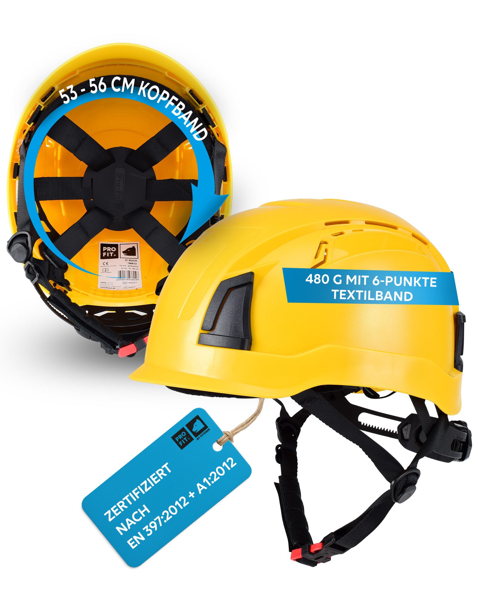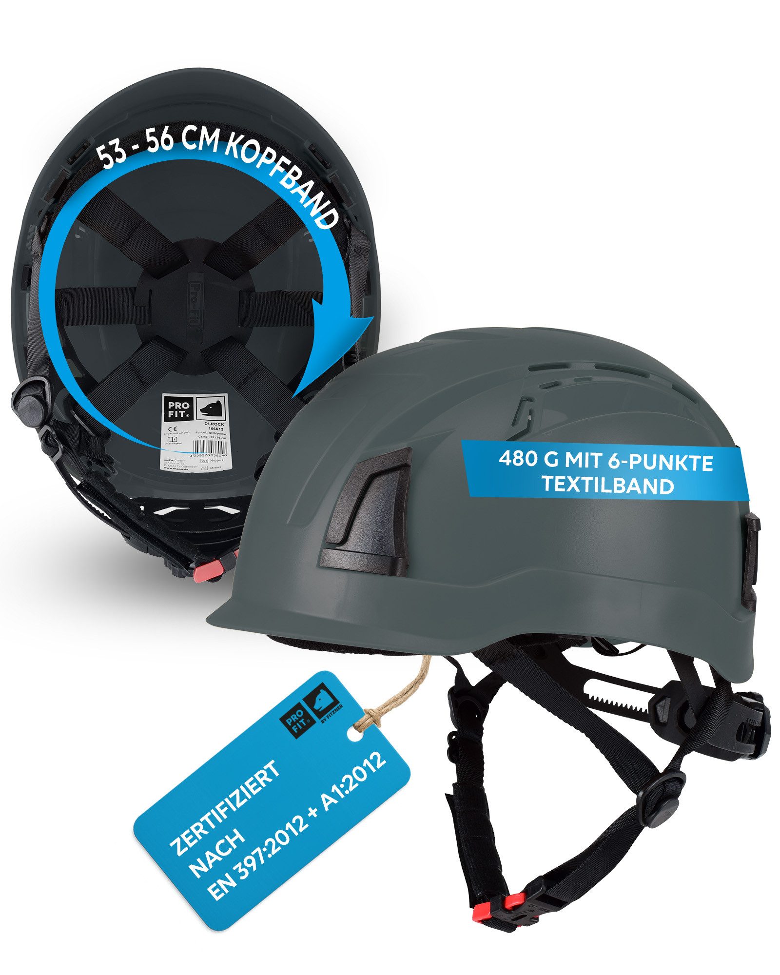 TRAGEKOMFORT: Der D!-Rock Schutzhelm ist ein moderner & leichter Arbeitsschutzhelm (480 Gramm), mit hohen Tragekomfort mittels 6-Punkt-Textil-Bänderung.