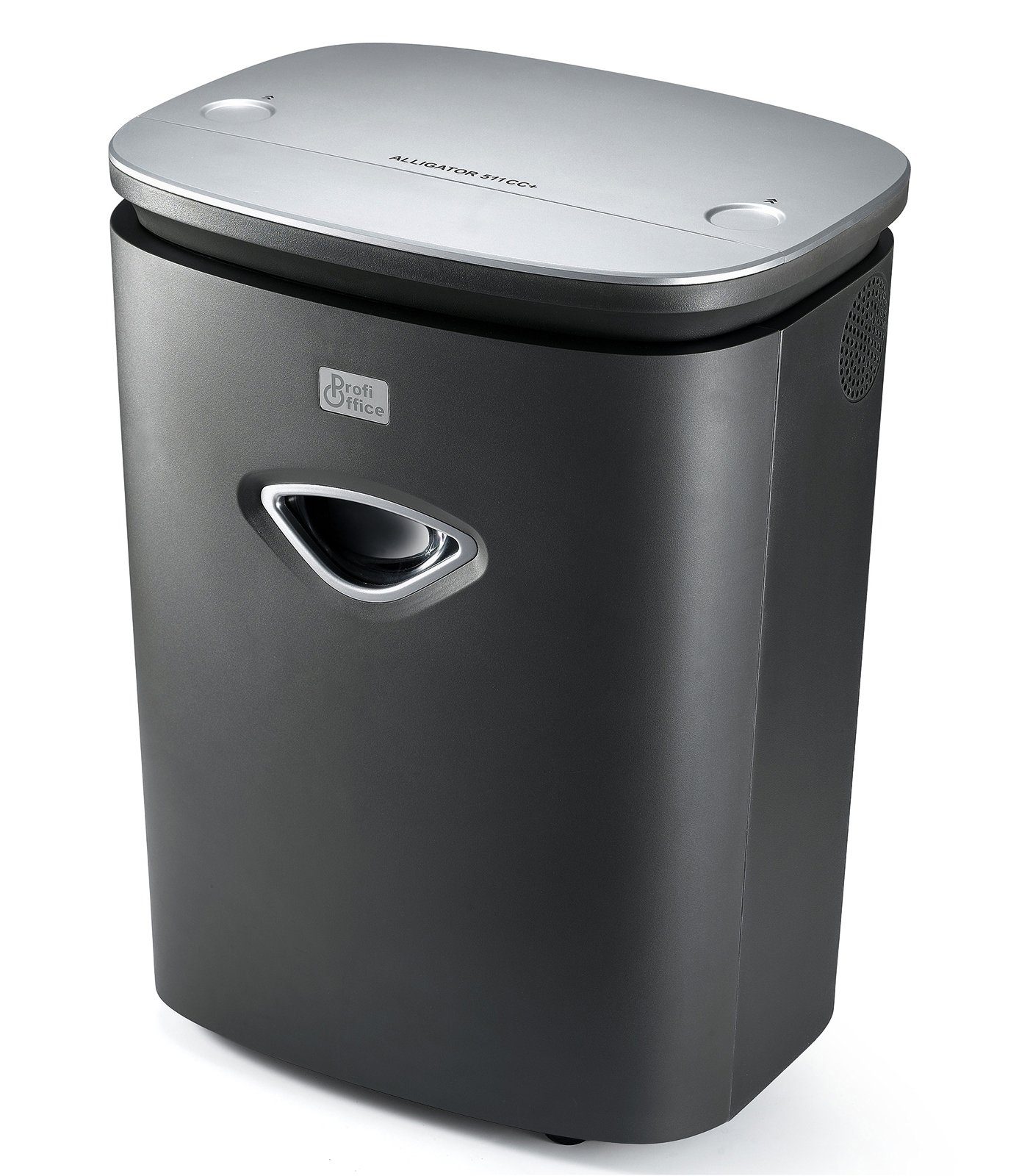 Die Alligator Serie, entwickelt für das kleine und auch größere Büro, wurde mit einem modernen Design und einer Top Technik ausgestattet. Die enorme Betriebsdauer bei Vollauslastung von 60 Minuten macht dieses Gerät zu einem Ausdauergerät im Bereich der Papiervernichtung. Somit kann es souverän in einem Mehrpersonenbüro eingesetzt werden. Der Alligator 511 CC ist für die Benutzung von 1-10 Personen im Büro gedacht. Der Aktenvernichter vernichtet bis zu 11 Blatt mit einer Grammatur von 80g/m², geheftet oder nicht geheftet. Das geschredderte Papier wird in 4 x 10 mm kleine Partikel geschnitten. Er ist sehr leise während seiner Aktivität. Wir bezeichnen sein geräuscharmes Arbeiten als Wisper Technology. Der Geräuschpegel beträgt maximal 65 dB. Die Papierkorbkapazität beträgt 29 Liter. Der Papierkorb verfügt über eine Stop-Automatik, wenn der Papierkorb voll ist.