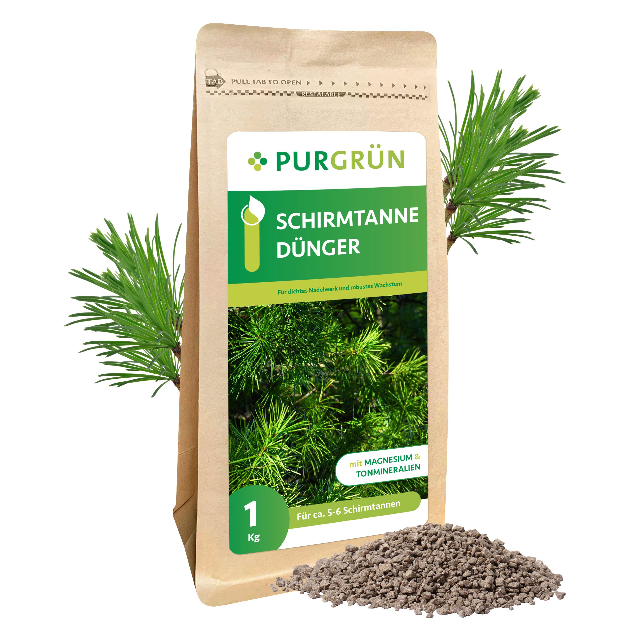 Der Purgrün Schirmtanne-Dünger begünstigt mit seiner einzigartigen Mischung aus organischen und mineralischen Elementen das Wachstum und die Vitalität Ihrer Schirmtannen. Sein reichhaltiger Kaliumanteil unterstützt die Nadelbildung und stärkt Triebe, Zweige sowie Äste.