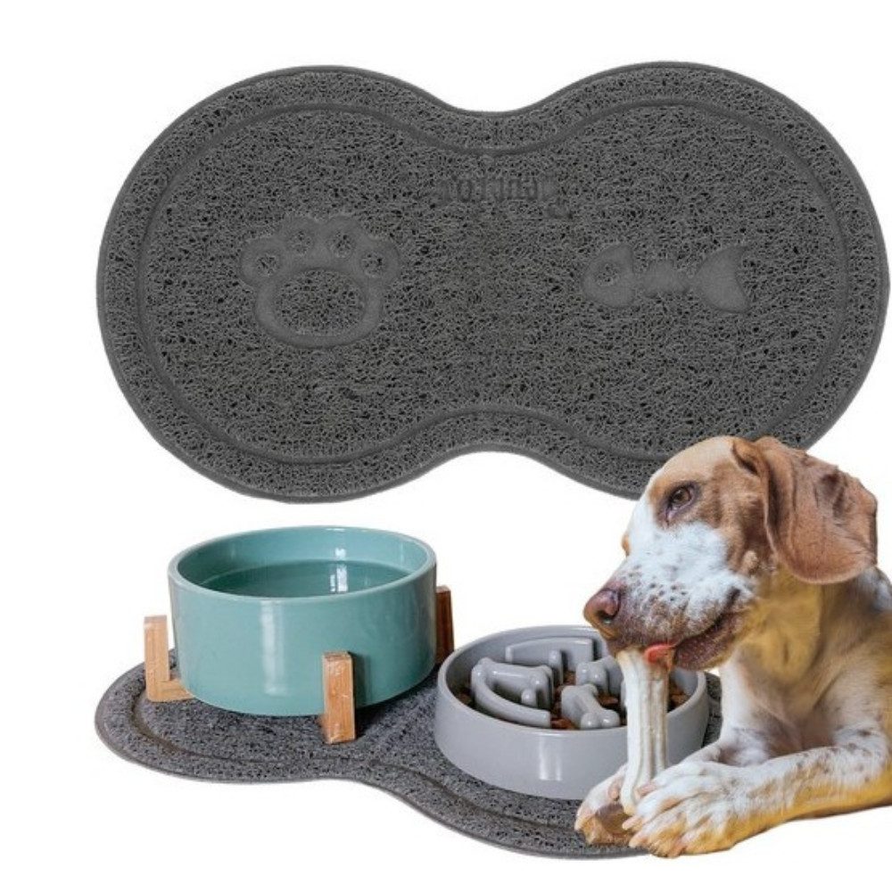 Das langlebige Material ist leicht zu reinigen – einfach mit einem feuchten Tuch abwischen oder unter fließendem Wasser abspülen. Die elegante graue Doppelmatte bietet Platz für zwei Schüsseln und passt mit ihrem dezenten Design in jede Wohnumgebung.