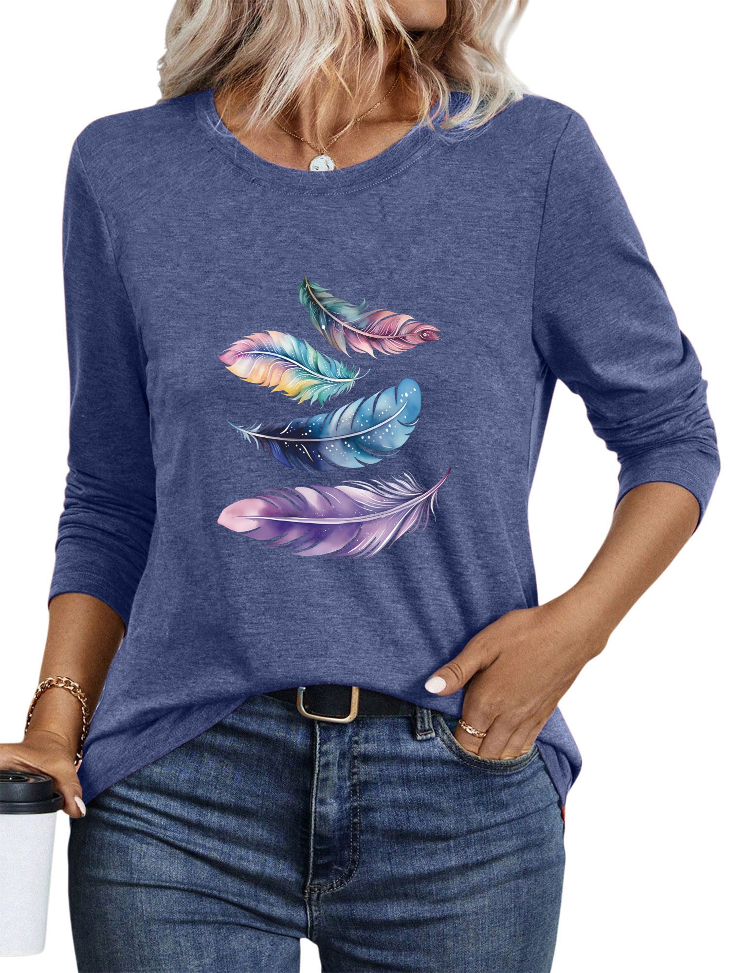Dieses lässige, elegante Langarm-T-Shirt besticht durch eine verspielte, taillierte Silhouette und eine Vielzahl von Farben. Es verfügt über eine lustige,Feder aussagekräftige Grafik auf der Brust, eine entspannte Silhouette mit überschnittenen Schultern, lange Ärmel, einen Rundhalsausschnitt und ein farbenfrohes Design. Der personalisierte Grafikdruck macht dieses Langarm-T-Shirt stylisch und fesselnd.