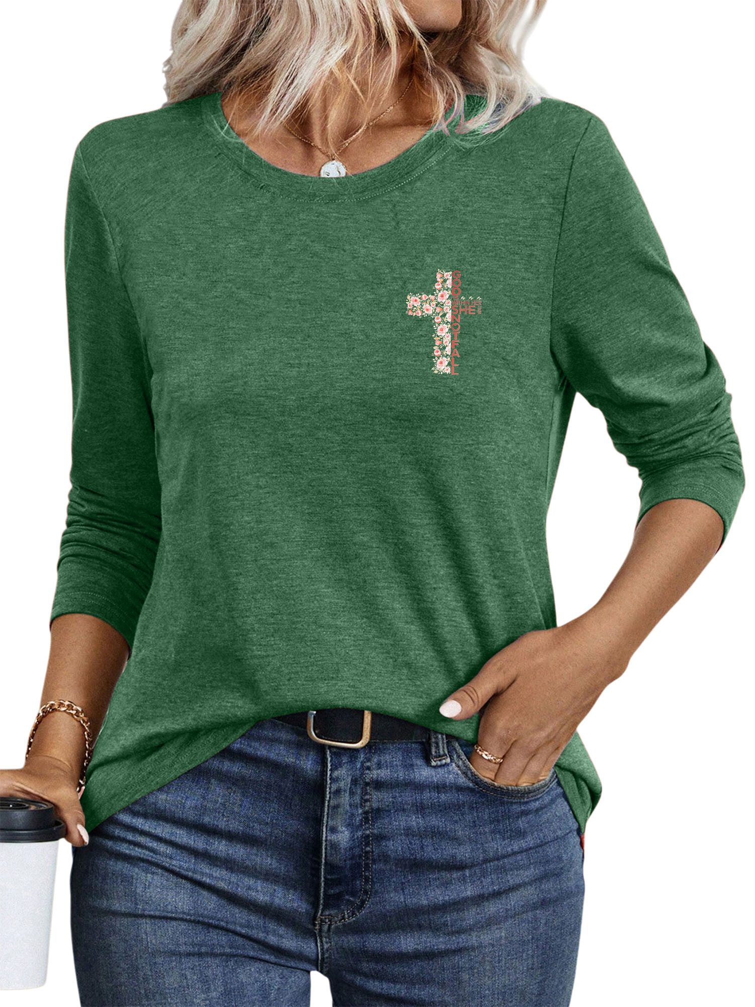 Dieses lässige, elegante Langarm-T-Shirt besticht durch eine verspielte, taillierte Silhouette und eine Vielzahl von Farben. Es verfügt über eine lustige,Kreuz auf der oberen linken Brust aussagekräftige Grafik auf der Brust, eine entspannte Silhouette mit überschnittenen Schultern, lange Ärmel, einen Rundhalsausschnitt und ein farbenfrohes Design. Der personalisierte Grafikdruck macht dieses Langarm-T-Shirt stylisch und fesselnd.