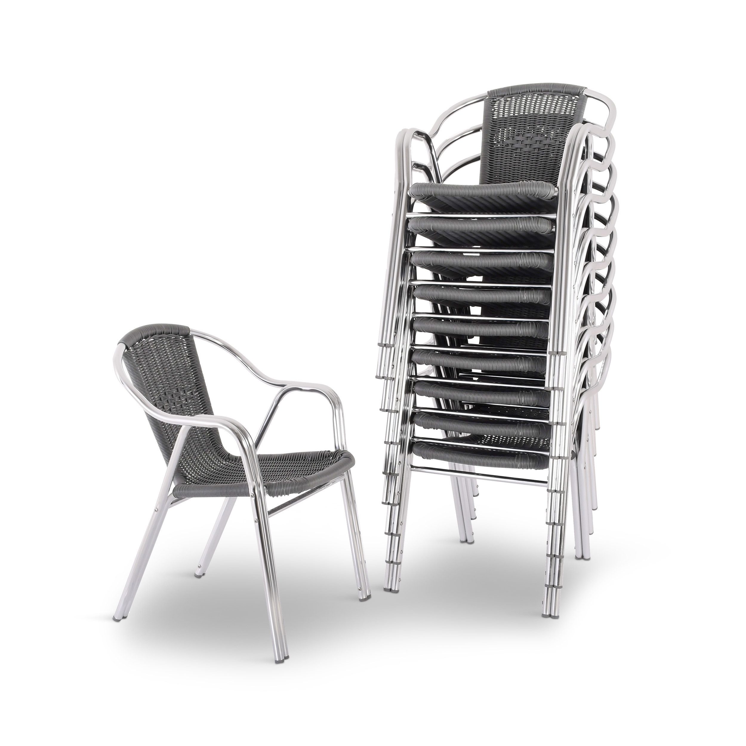 Entdecke das Raburg Vita Bistrostuhl 10er-Set in Dunkelgrau, die ideale Wahl für Gastronomie und Heimgebrauch. Diese stapelbaren Gartenstühle überzeugen durch ein stabiles Doppelrohrgestell aus Aluminium, das wetterfest und leicht ist - jedes Stück wiegt nur 2,9 kg und kann bis zu 150 kg tragen.