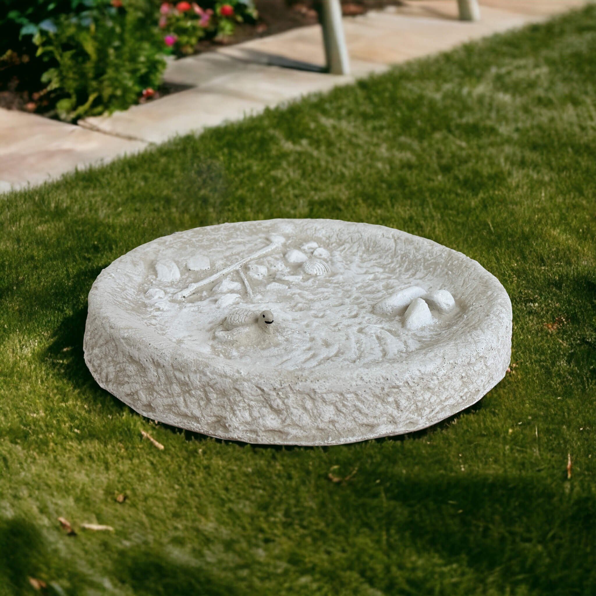 Vogeltränke GRAU mit fester schwimmender Schildkröte