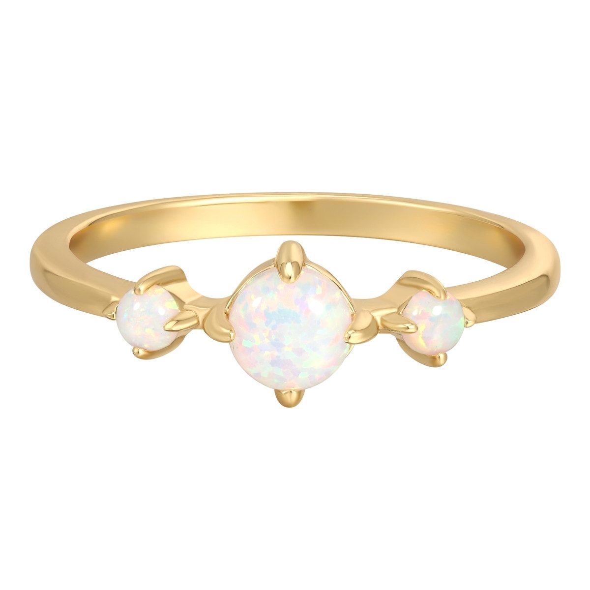 Sie mögen die Ausstrahlung von Edelstein-Schmuck und tragen gerne stilvoll verspielte Vintage-Ringe? Dann ist diese Kreation des Labels Rafaela Donata Ihr neues Every-Day-Piece: Ein Trio schimmernder Opale (synth.) im Cabochon-Schliff schmückt die filigrane Ringschiene, gehalten von kleinen Krappen, die für ein Maximum an Lichteinfall sorgen. Das Ringdesign schmeichelt jeder Hand und setzt verspielte Akzente. Der Handschmeichler ist aus 925er Sterlingsilber gefertigt und mit Gelbgold veredelt - eine Goldnuance, die nie unmodern wird. Das charmante Kombinationstalent macht jedes Outfit zum Hingucker!