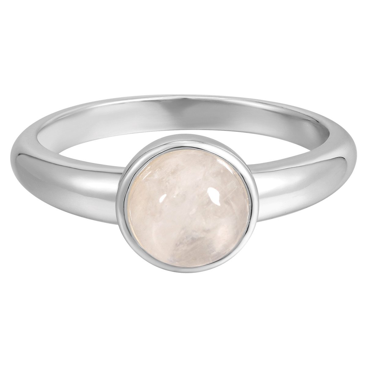 Sie mögen stilvollen Edelstein-Schmuck in klassischen Designs? Dann ist dieser zeitlose Ring des Labels Rafaela Donata eine Bereicherung für Ihr Schmuckkästchen: Ein Mondstein im Cabochon-Schliff schmückt die Ringschiene, gut geschützt in einer Zargenfassung. Sein besonderer Schimmer erinnert an das Mondlicht und verändert sich bei jeder Bewegung - früher glaubte man, die Mondphasen aus dem Schimmern herauslesen zu können. Der Ring verleiht jedem Outfit Vintage-Vibes und setzt Ihre Hand eindrucksvoll in Szene. Gefertigt aus 925er Sterlingsilber und mit einer Rhodinierung vor dem Anlaufen geschützt, bewahrt der Handschmeichler lange seinen intensiven Silberglanz.