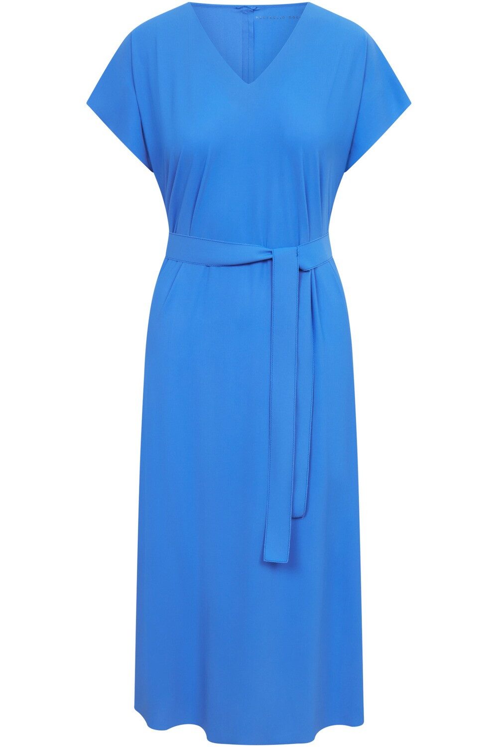 Das Adina Kleid von Raffaello Rossi vereint lässigen Chic mit funktionalen Eigenschaften und ist somit der ideale Begleiter für verschiedene Anlässe. Die Mid-Довжина und der elegante V-Ausschnitt verleihen dem Kleid eine feminine Silhouette, während die leicht überschnittenen Arme und die seitlichen Schlitze am Saum für eine angenehme Bewegungsfreiheit sorgen. Diese Designelemente tragen zur Leichtigkeit des Kleides bei und machen es zu einem Must-have für modebewusste Frauen. Die vielseitigen Tragemöglichkeiten des Adina Kleides sind ein weiteres Highlight. Ob als lässiges Hängerkleid ohne Gürtel oder mit dem passenden Bindegürtel aus Oberstoff, das Kleid lässt sich individuell gestalten und sorgt für einen stets frischen Look. Es passt sowohl zu einem entspannten Stadtbummel als auch zu eleganteren Anlässen, bei denen ein Hauch von Stil gefragt ist. Hergestellt aus einer technischen, ultraleichten Jerseyware, bietet das Kleid nicht nur einen hohen Tragekomfort, sondern auch praktische Vorteile. Die innovative Materialzusammensetzung reguliert die Körpertemperatur, ist pflegeleicht und trocknet schnell. Zudem ist das Kleid bügelfrei, was es zu einem idealen Reisebegleiter macht. Adina ist somit die perfekte Wahl für modebewusste Frauen, die Wert auf Stil und Funktionalität legen. Oberstoff: 73% Polyamid, 27% Elasthan