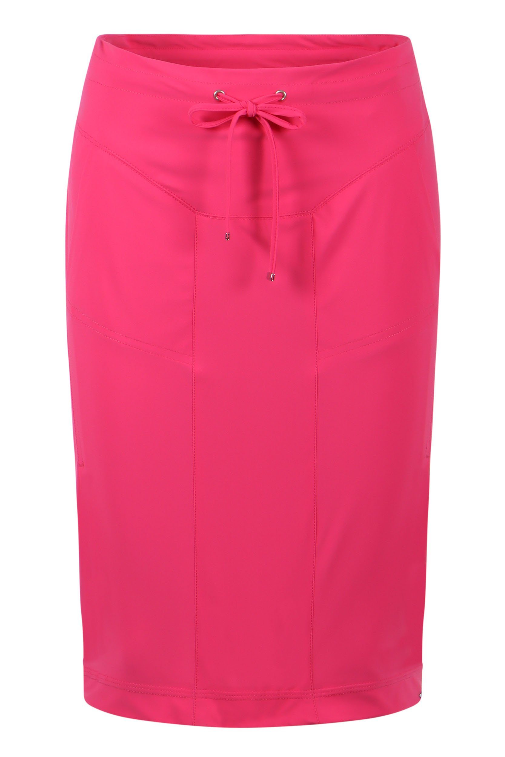Dieser lässige, knielange Sommerschlupfrock Waris in Pink ist im Joggingstyle geschnitten. Er hat einen Tunnelzug mit Tunnelzugbändern und raffinierte Schnittdetails, die eine schöne Figur zaubern. Hinten ist der Rock leicht geschlitzt. Seitliche Taschen perfektionieren den Rock.