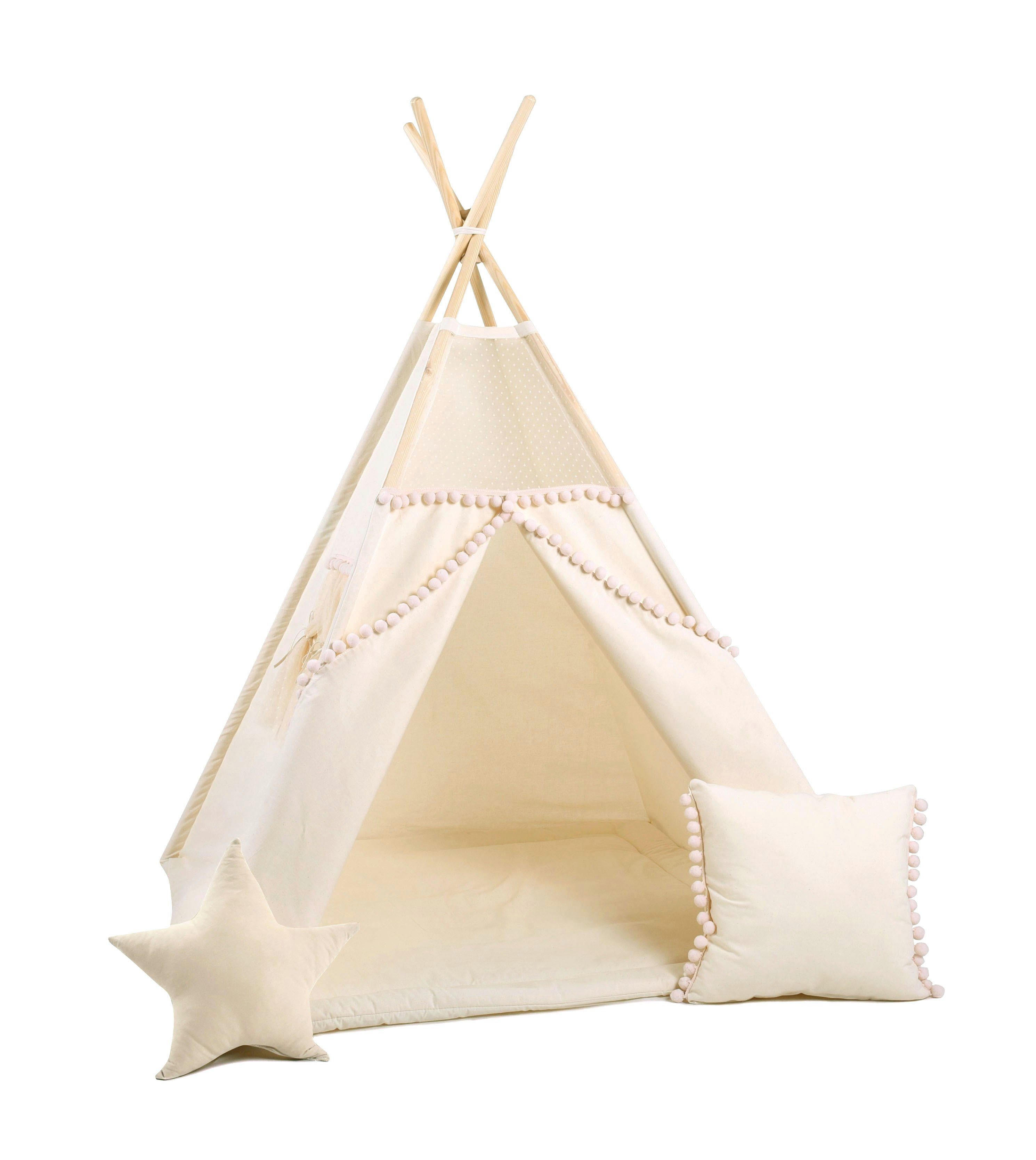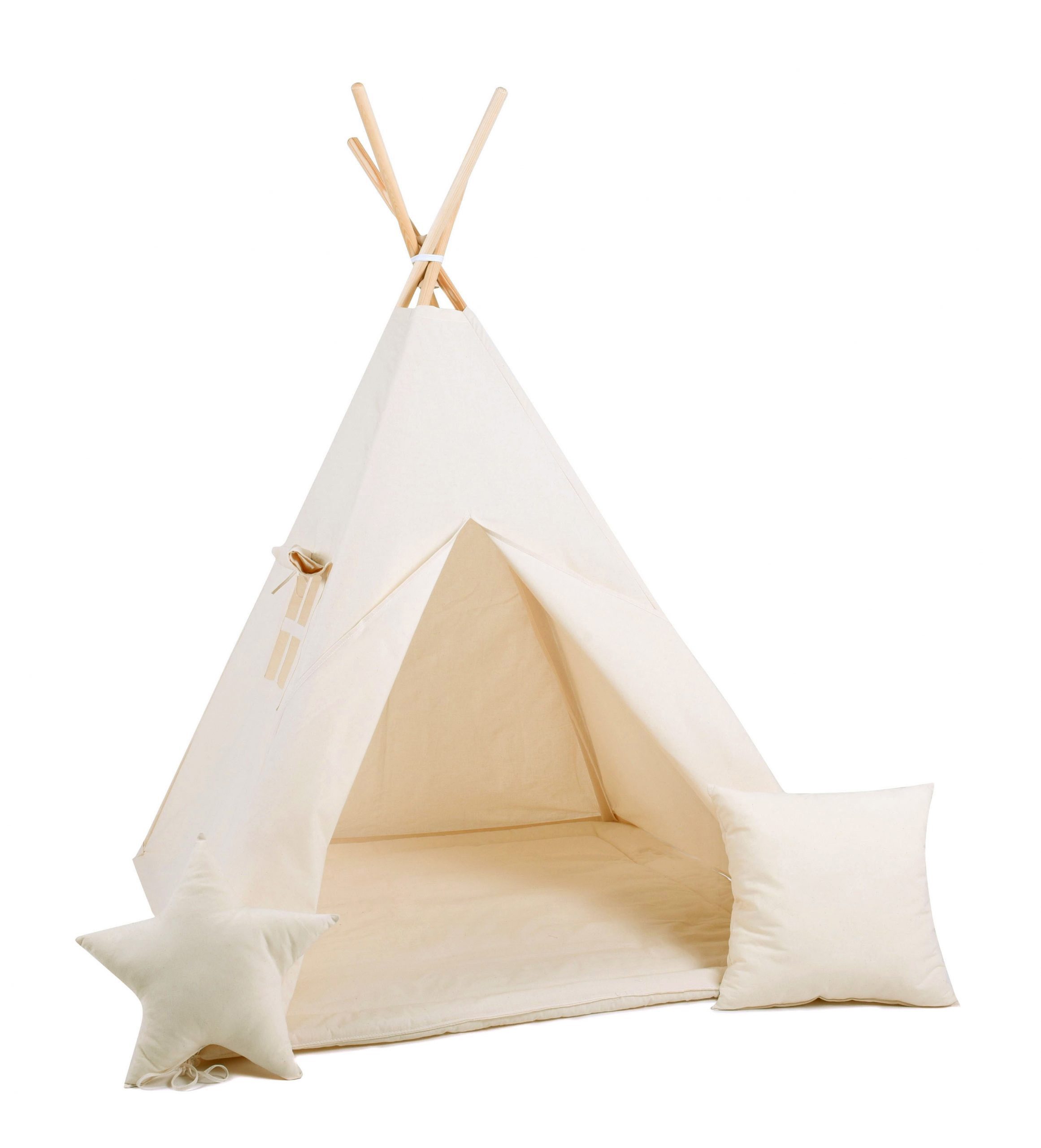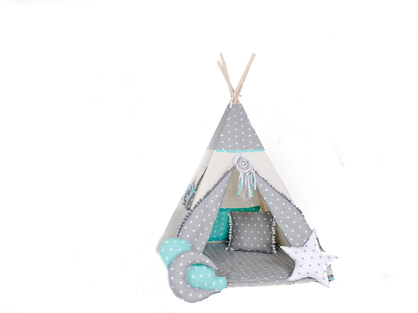 [Mit kleinem Zubehör ]- Das Set besteht aus insgesamt 4 Elemente dem Tipi mit Decke und 2 Kissen.