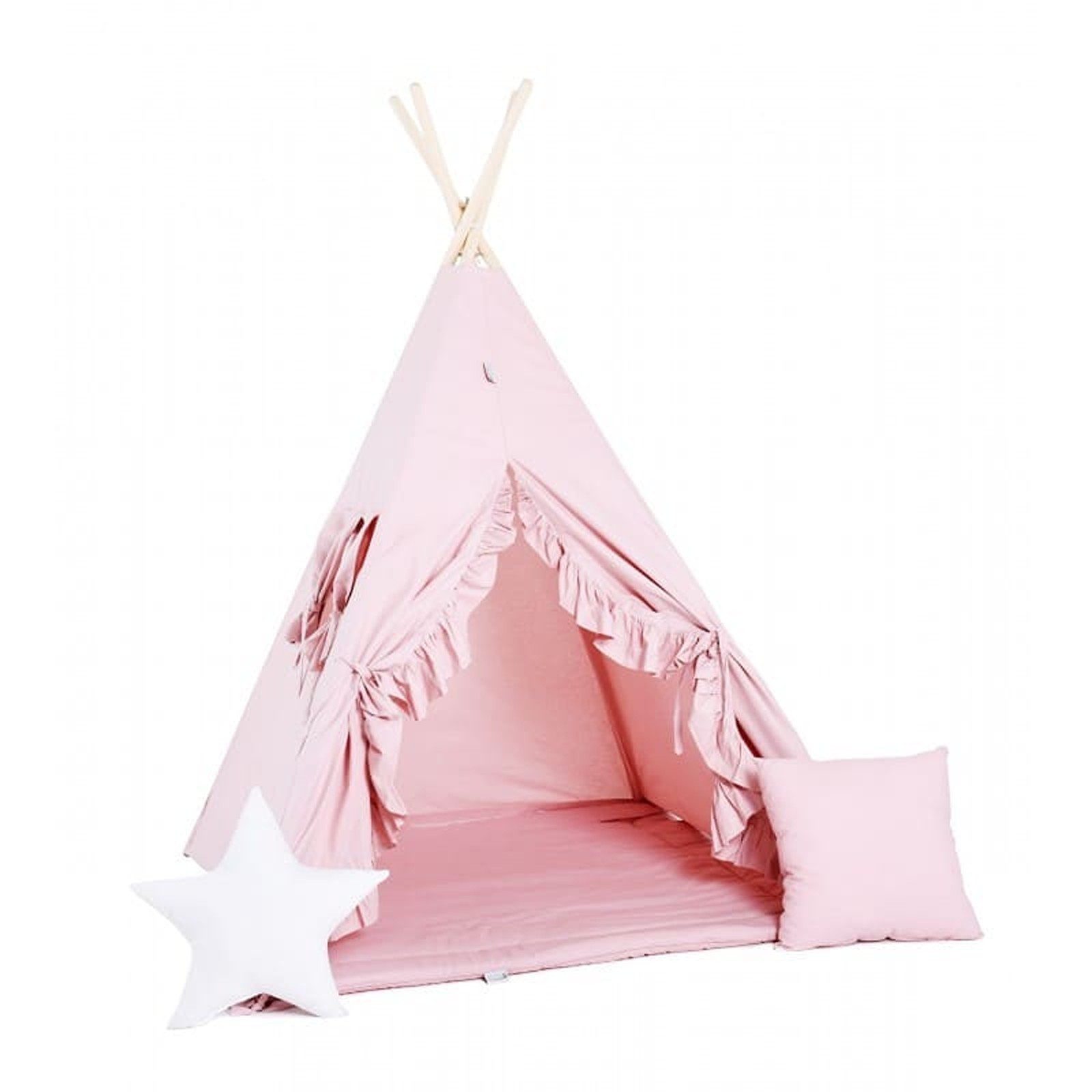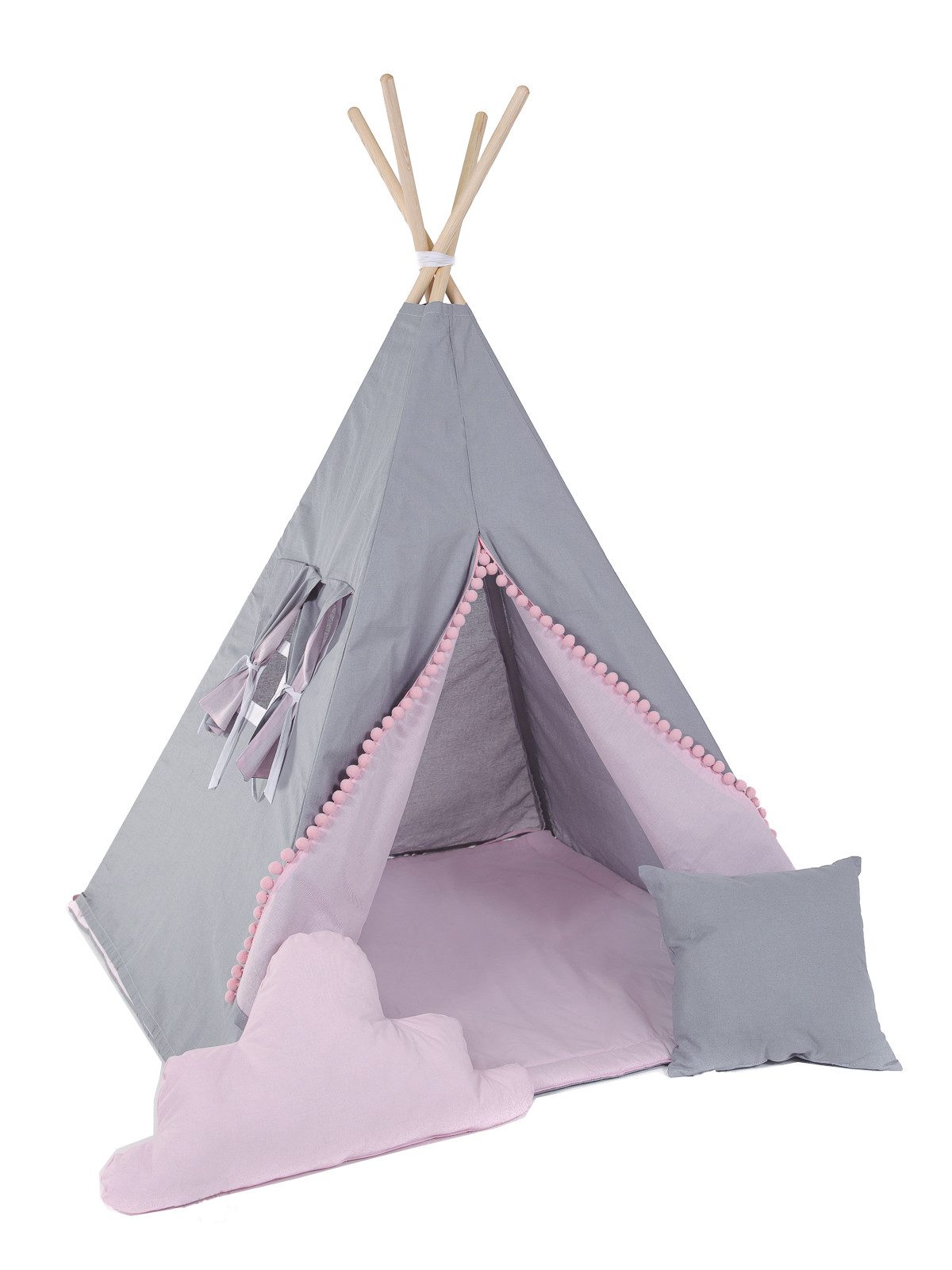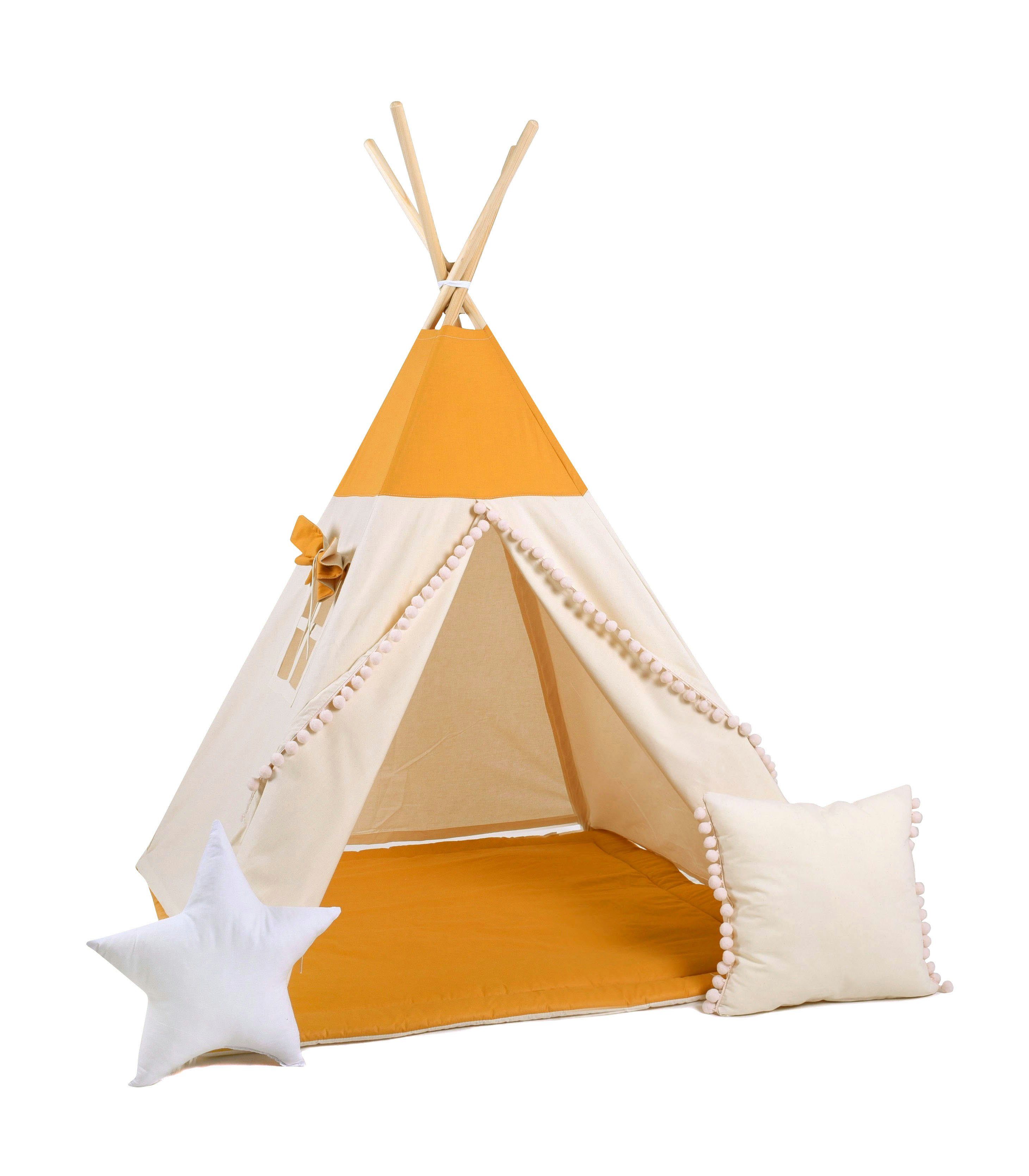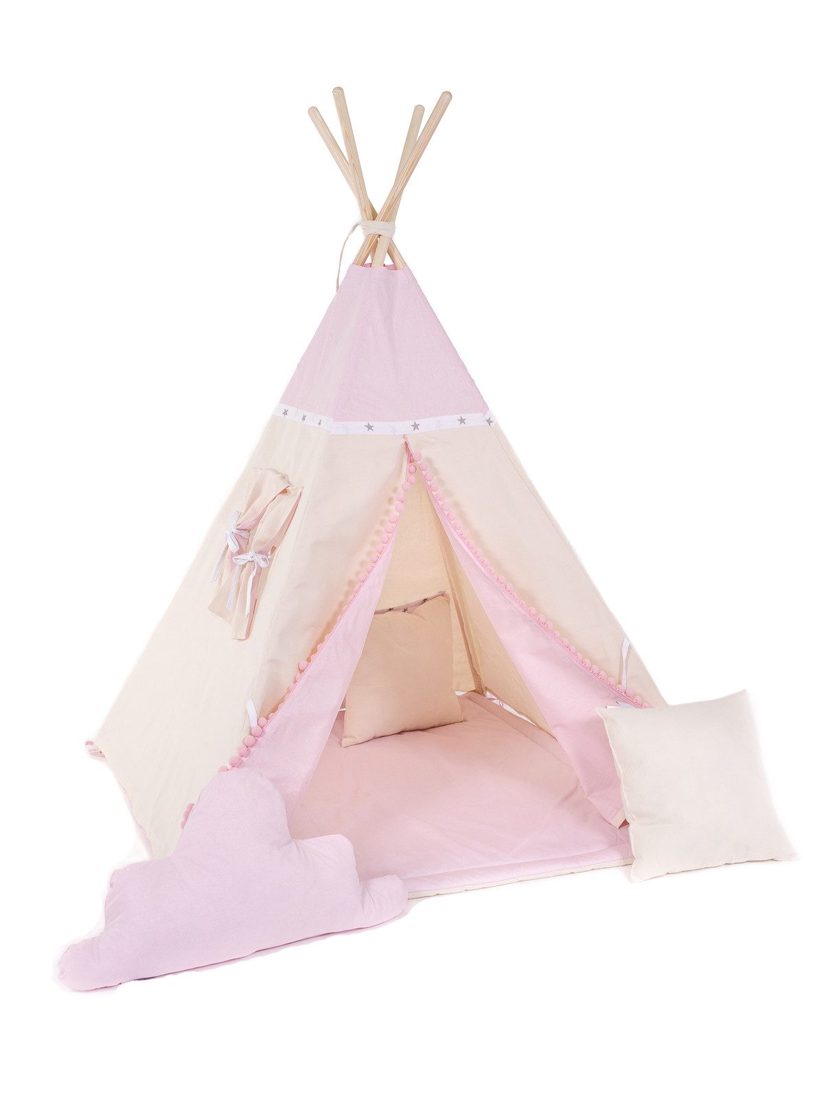 [Mit kleinem Zubehör ]- Das Set besteht aus insgesamt 4 Elemente dem Tipi mit Decke und 2 Kissen.