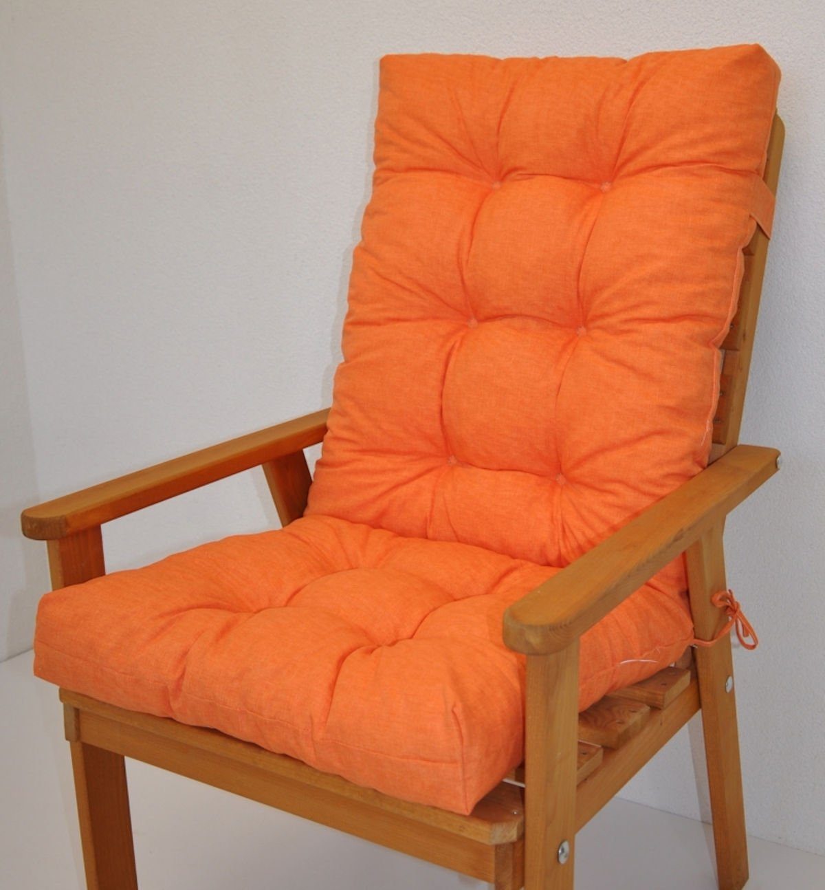 Polster für Gartenstuhl , Ersatzpolster Schaukelstuhl , Hochlehner Auflage , Gartenmöbel und Gartenbänke . Colore arancione (orange) , 80 % Baumwolle , 20 % Polyester , angenehm weich , robust und unempfindlich . Розмір : L 115 cm B 50 cm , Dicke ca. 12 cm . Sitz B 50 cm T 47 cm , Lehne H 68 cm B 50 cm . 10 fach abgesteppt . Sitz - Rücken Absteppung per Naht . Erstklassige Qualität und dicke Füllung . Wir fertigen in unserer Näherei diese Kissen in 14 Farben für Sie . Hauptaugenmerk ist die Qualität der Verarbeitung . Unsere Polster werden jede Woche für Sie neu angefertigt .