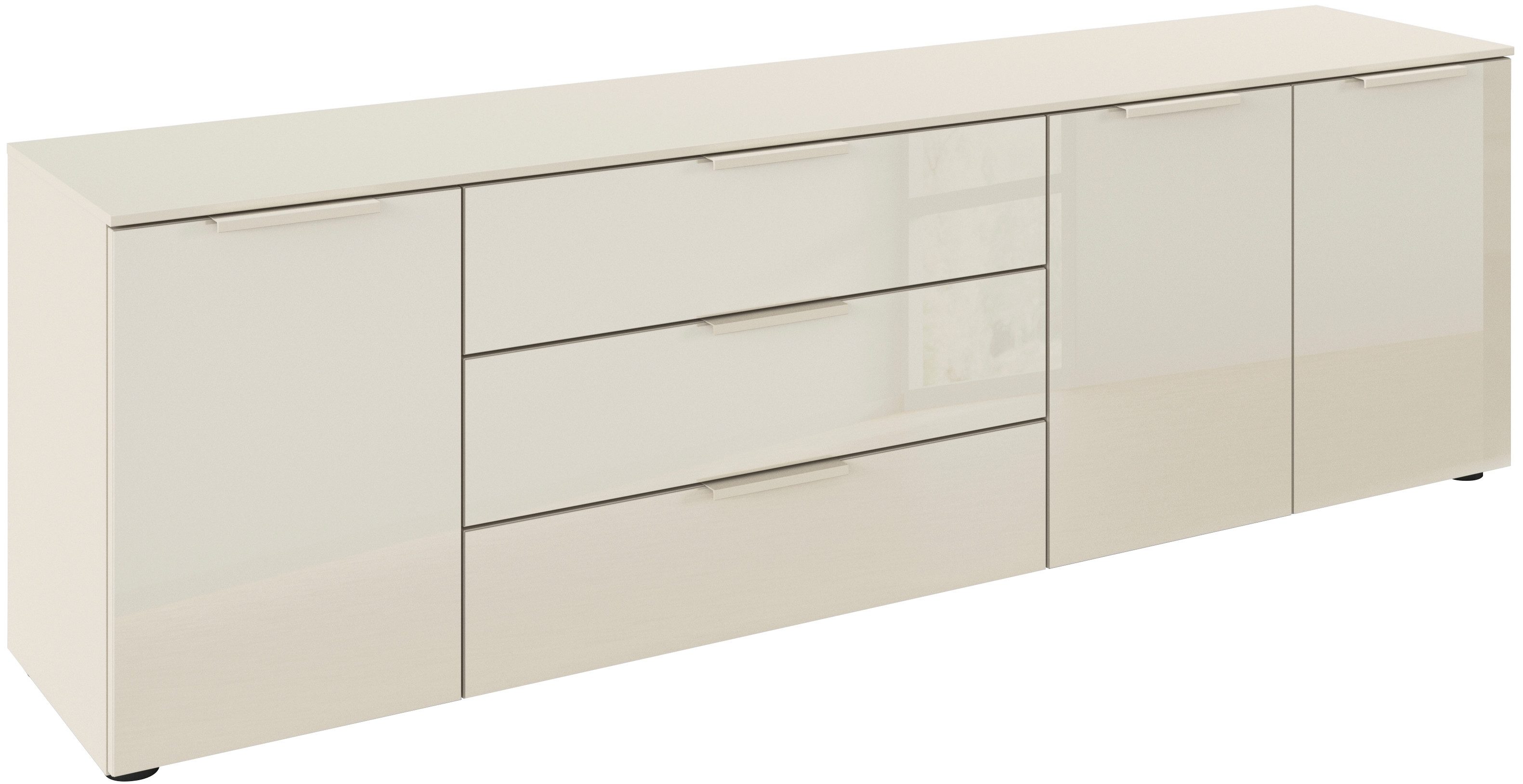 Das Sideboard »FLIPP« von rauch ist nicht nur eine Kommode, sondern ein Statement für modernes Design und clevere Organisation. Dank der breiten Farbauswahl - darunter auch die wohnlich warme Nuance Beige - kannst du dir deinen Wohnraum ganz individuell und nach deinen Wünschen einrichten. Ein Highlight der Kommode ist die Front mit Glasauflage, die dem Möbelstück einen Hauch von Eleganz verleiht und ganz luftig und leicht wirkt. Mit drei großzügigen Schubkästen und drei Türen bietet sie dir reichlich Stauraum, um deine Habseligkeiten übersichtlich und geordnet zu halten. Die Schubkästen verfügen über Selbsteinzug und Dämpfung, wodurch sie leise geschlossen werden können – für eine ruhige Atmosphäre in deinem Zuhause. Auch die Türen sind mit Scharnierdämpfung ausgestattet, was ein behutsames Сховати gewährleistet. Die höhenverstellbaren Füße erlauben es dir, das Sideboard an deine gewünschte Höhe anzupassen, während die farblich passenden Griffe das moderne Design abrunden.