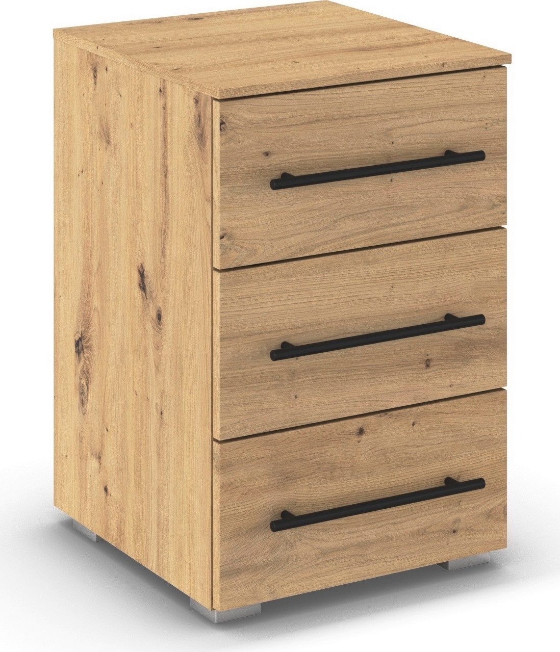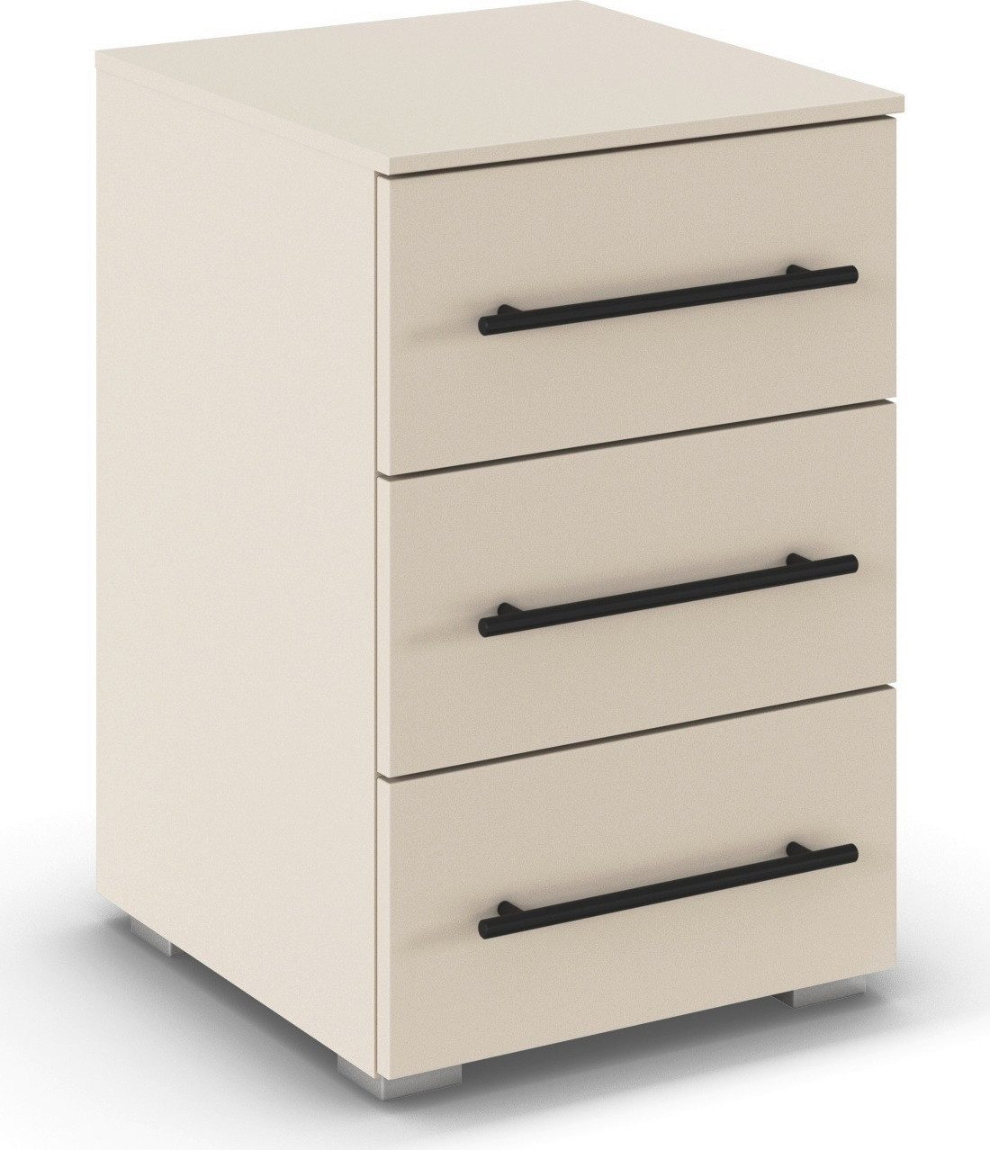 Der Nachttisch »Avola« von rauch kombiniert modernes Design mit praktischer Funktionalität und ist die ideale Ergänzung für dein Schlafzimmer. Sie ist in attraktiven Farbvarianten erhältlich, wie klassischem Weiß, warmer Holzoptik, elegantem Graumetallic oder sanftem Beige, und lassen sich so perfekt auf deinen Einrichtungsstil abstimmen. Schwarze Griffstangen setzen einen stilvollen Kontrast und runden das Design harmonisch ab. Die integrierten Schubladen bieten dir praktischen Stauraum für alles, was du in Bettnähe griffbereit haben möchtest: Von Büchern und Lesebrillen bis zu kleineren Accessoires. Die Soft-Close-Funktion sorgt zudem für ein sanftes und geräuschloses Сховати der Schubladen, was den Komfort deutlich erhöht.