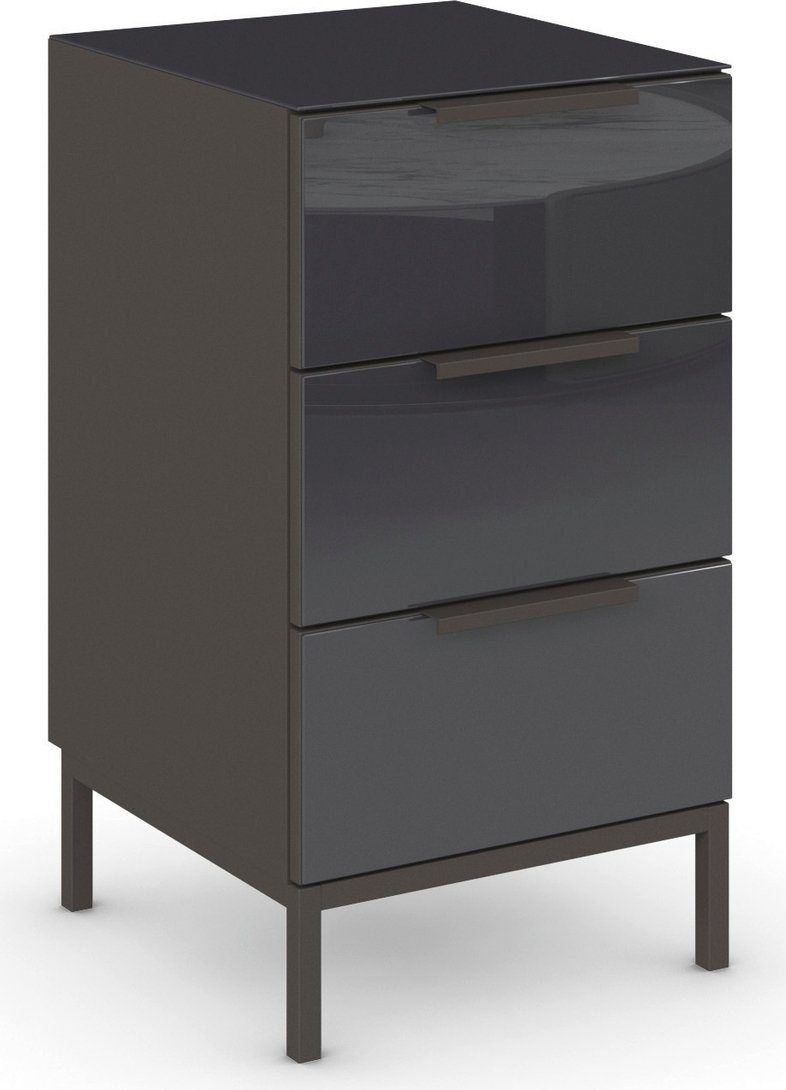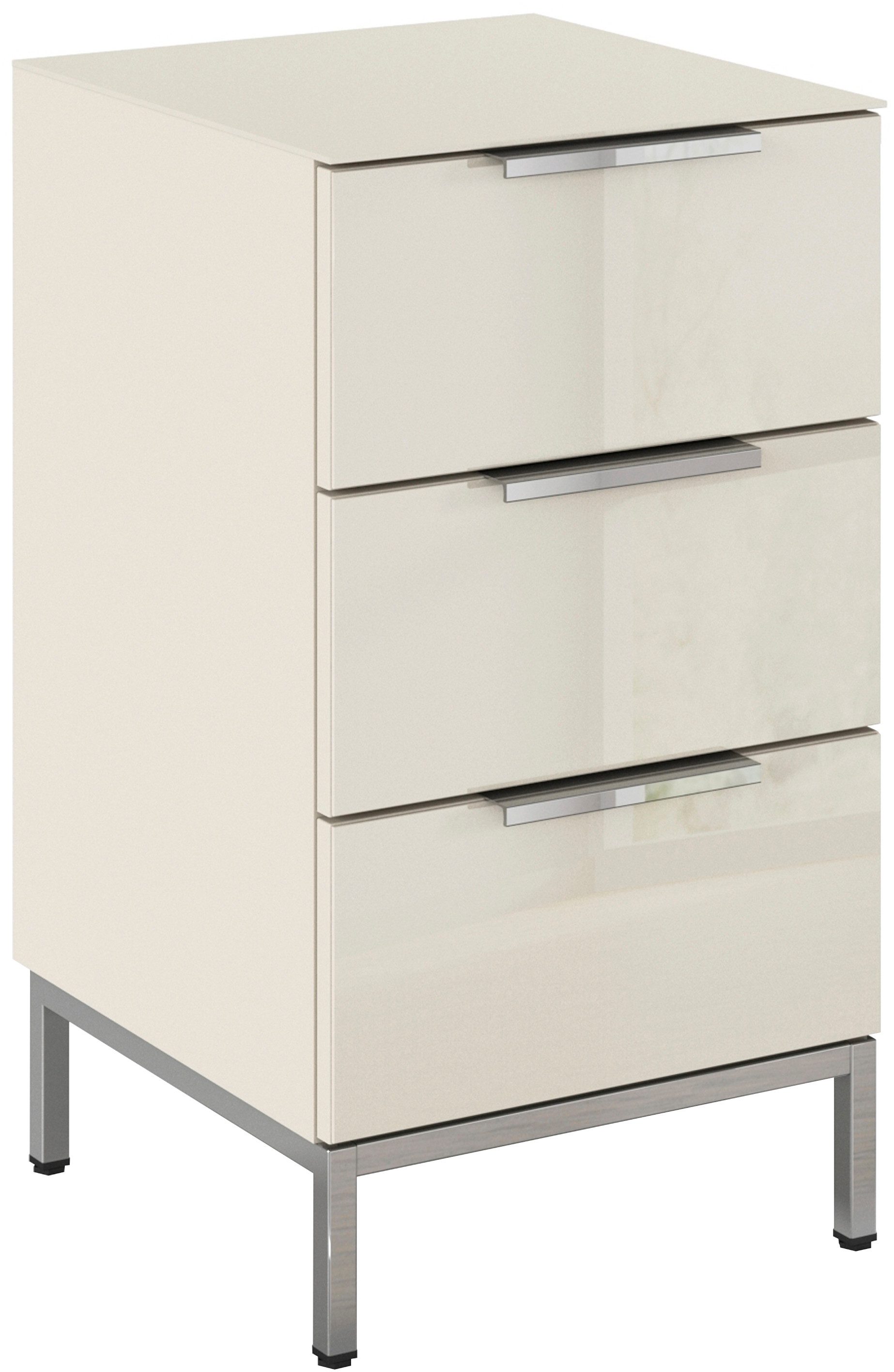 Mehr als nur ein funktionales Möbelstück: Der Nachttisch »FLIPP« von rauch ist eine stilvolle Ergänzung für jedes Schlafzimmer. Um individuellen Wünschen gerecht zu werden, hast du die Wahl zwischen verschiedenen Farbkombinationen - darunter auch die wohnlich warme Nuance Beige. Ein Highlight des Nachttisches ist die Front mit Glasauflage, die dem Möbelstück einen Hauch von Eleganz verleiht und ganz luftig und leicht wirkt. Nicht nur die Front ist mit einer edlen Glasauflage ausgestattet, auch der Oberboden des Nachttisches schenkt mit glänzender Glasauflage optische Leichtigkeit. Das schwerelose Design wird durch die farblich passenden Griffe stilvoll abgerundet. Für eine zeitlose Optik sorgt das Fußgestell aus Metall, das dem Nachttisch einen besonders filigranen Auftritt verleiht. Mit drei geräumigen Schubkästen bietet er dir großzügigen Stauraum, um all deine nächtlichen Necessaires ordentlich zu verstauen. Dabei sind die Schubkästen mit Selbsteinzug und Dämpfung ausgestattet, was ein leises und sanftes Сховати ermöglicht, ohne den Schlaf deines Partners zu stören.
