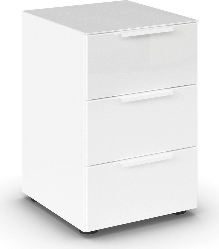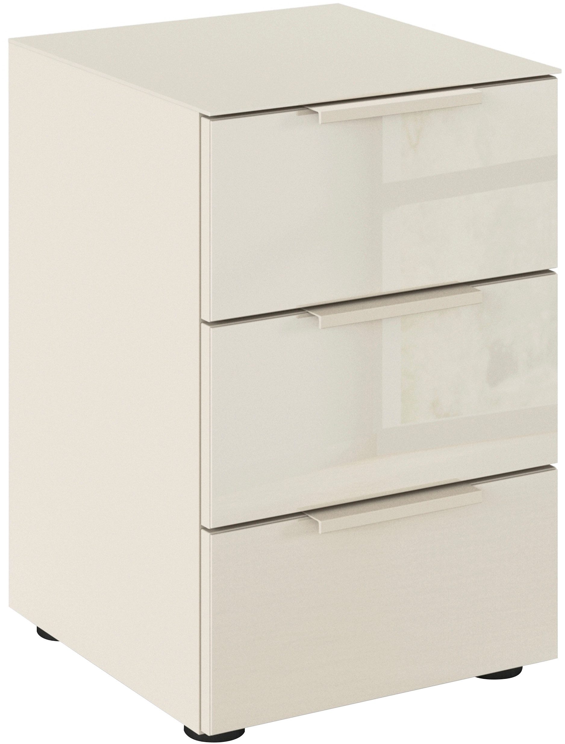 Mehr als nur ein funktionales Möbelstück: Der Nachttisch »FLIPP« von rauch ist eine stilvolle Ergänzung für jedes Schlafzimmer. Um individuellen Wünschen gerecht zu werden, hast du die Wahl zwischen verschiedenen Farbkombinationen - darunter auch die wohnlich warme Nuance Beige. Ein Highlight des Nachttisches ist die Front mit Glasauflage, die dem Möbelstück einen Hauch von Eleganz verleiht und ganz luftig und leicht wirkt. Nicht nur die Front ist mit einer edlen Glasauflage ausgestattet, auch der Oberboden des Nachttisches schenkt mit glänzender Glasauflage optische Leichtigkeit. Das schwerelose Design wird durch die farblich passenden Griffe stilvoll abgerundet. Mit drei geräumigen Schubkästen bietet er dir großzügigen Stauraum, um all deine nächtlichen Necessaires ordentlich zu verstauen. Dabei sind die Schubkästen mit Selbsteinzug und Dämpfung ausgestattet, was ein leises und sanftes Сховати ermöglicht, ohne den Schlaf deines Partners zu stören. Praktisch sind auch die höhenverstellbaren Füße von »FLIPP«, mit deren Hilfe das Möbel nahtlos an die Höhe deines Bettes angepasst werden kann.