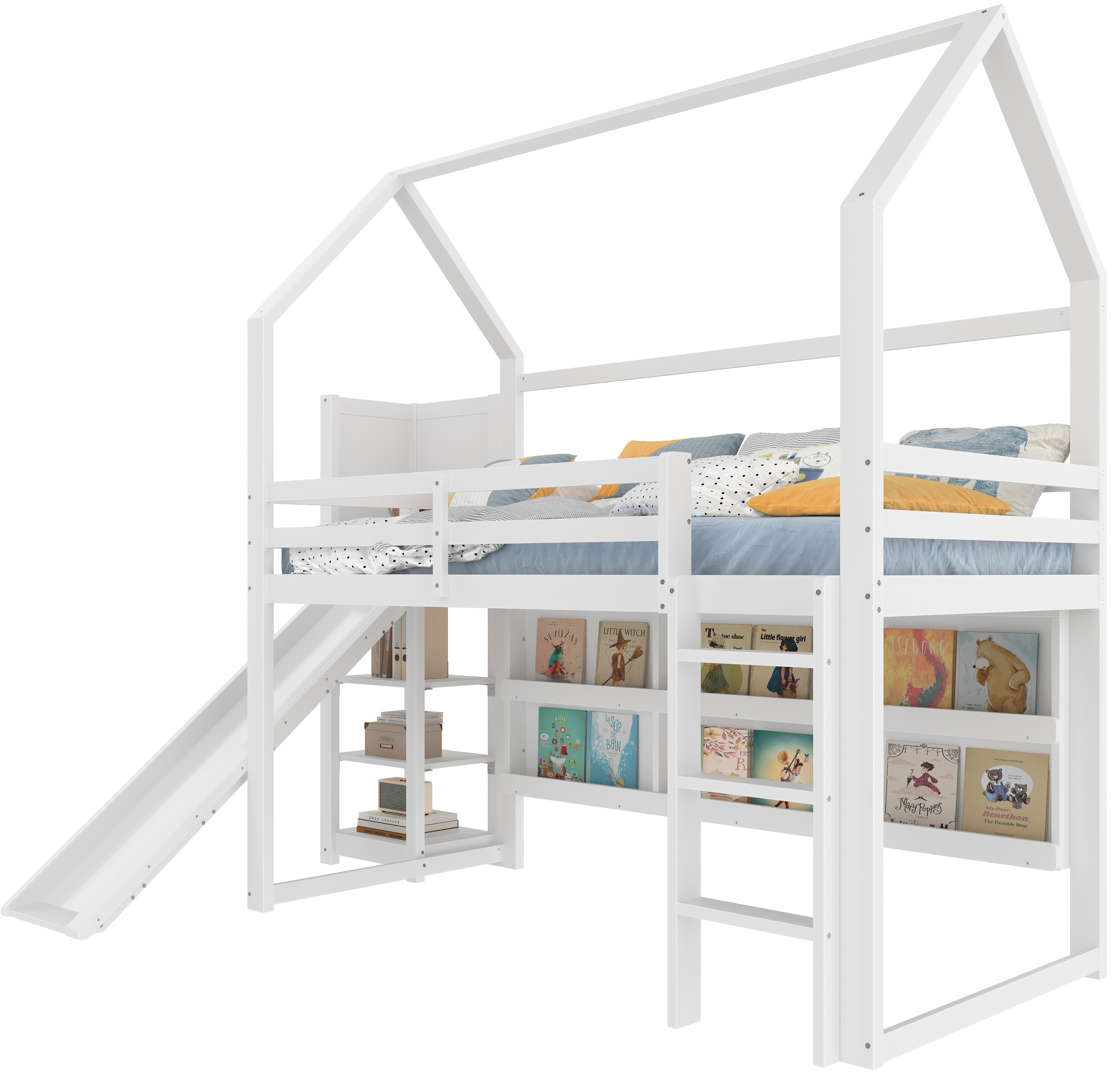 Märchenhafte Hausform mit Rutsche für Abenteuer: Die Form des Bettes erinnert an ein kleines Haus und bietet den Kindern eine Fantasiewelt zum Spielen. Die integrierte Rutsche macht das Aufstehen und Spielen zu einem täglichen Abenteuer und lässt das Kinderzimmer in eine Welt voller Spaß und Entdeckungen verwandeln.