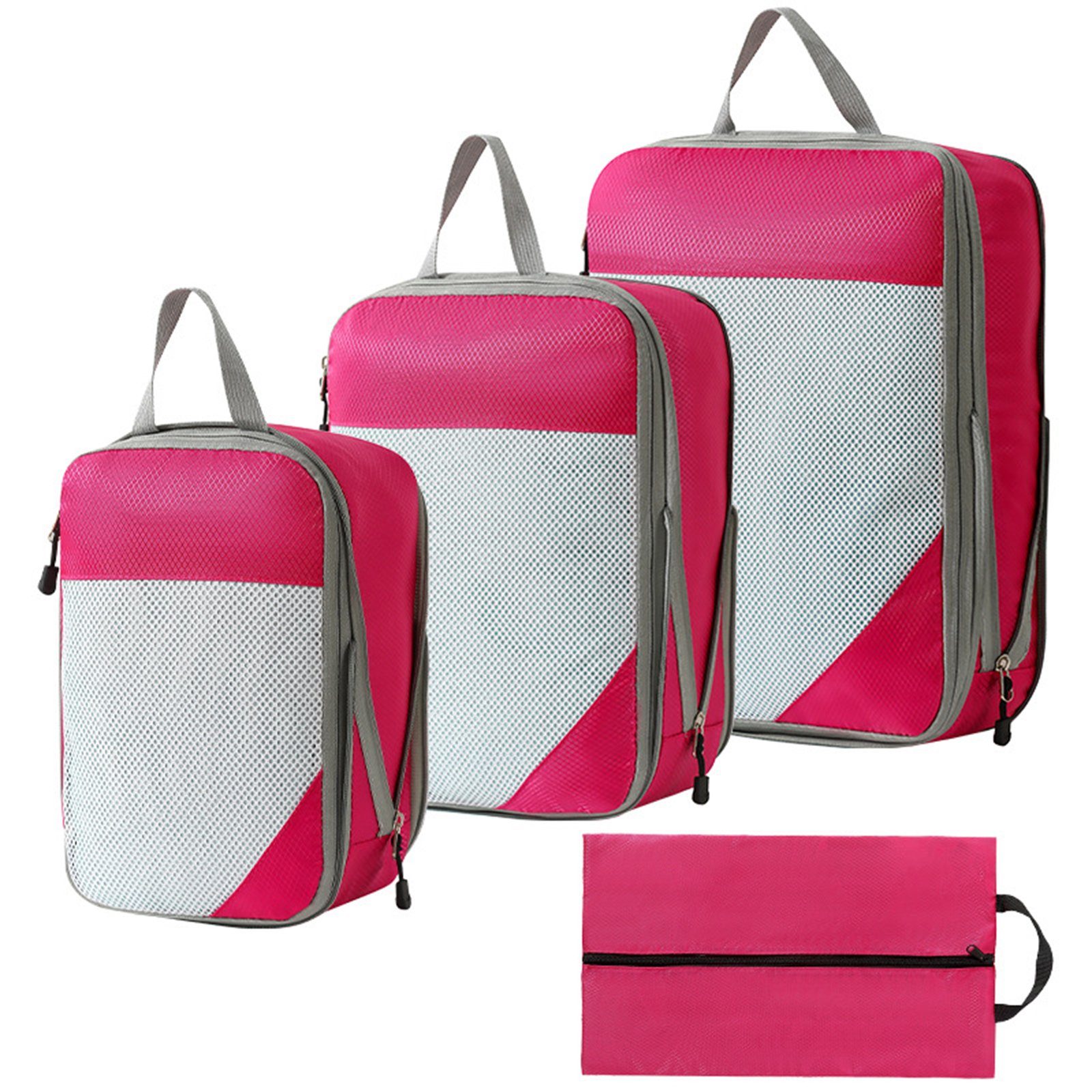Die 4-teiligen Reiseverpackungs-Organizer enthalten 3 verschiedene Größen komprimierbarer Würfel und 1 Schuhbeutel. Halten Sie Ihre Kleidung und Accessoires getrennt und vermeiden Sie das lästige Stöbern durch einen unordentlichen Koffer.