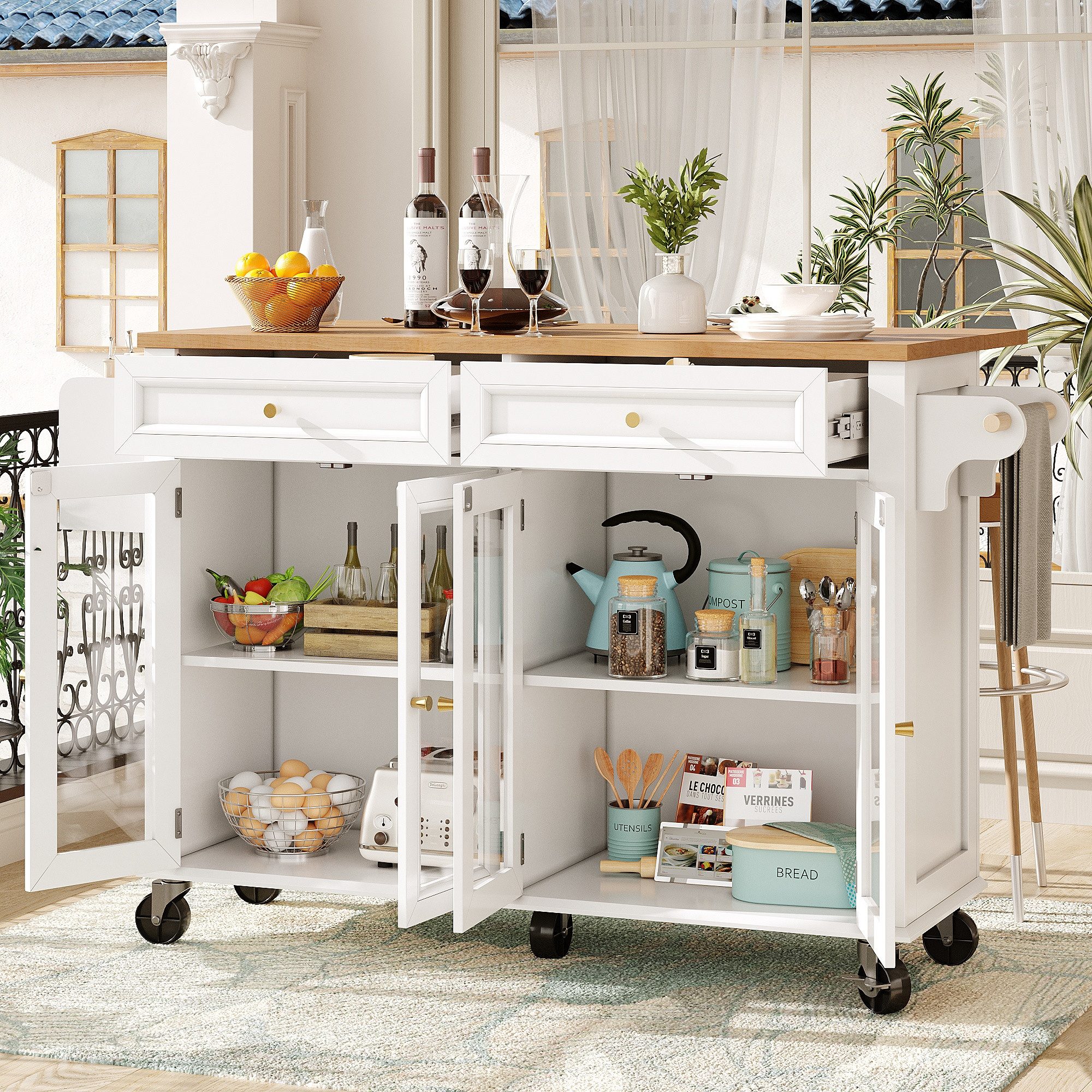 Set-Typ | mit Rollen, Zwei-Modi-System & großem Stauraum – Kücheninsel für Esszimmer, Wohnzimmer & multifunktionale Haushalte |