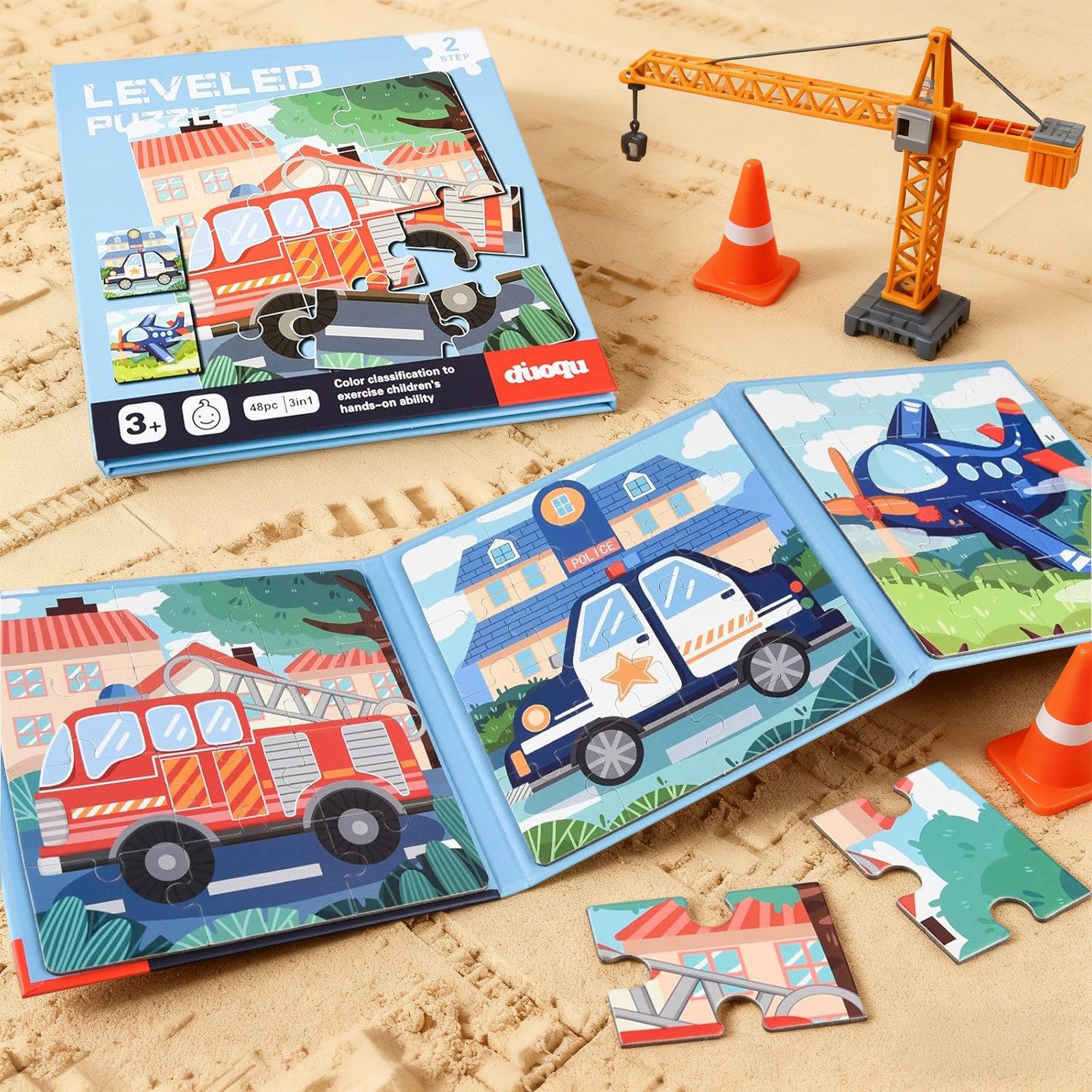 Das REDOM Magnet-Puzzlebuch kombiniert drei Seiten mit unterschiedlichen Illustrationen und Schwierigkeitsgraden. Es wurde speziell für Vorschulkinder entwickelt, um spielerisch motorische Fähigkeiten und logisches Denken zu fördern.