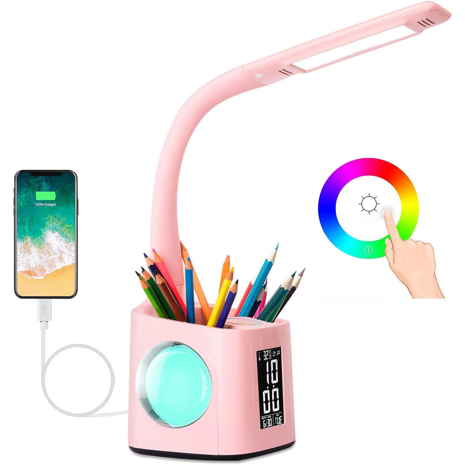 Eigenschaften | Wecker USB-Ladeanschluss 256 Farbwechsel Sockel mit 3 Helligkeitsstufen flexible Lampenkopf und -arm |