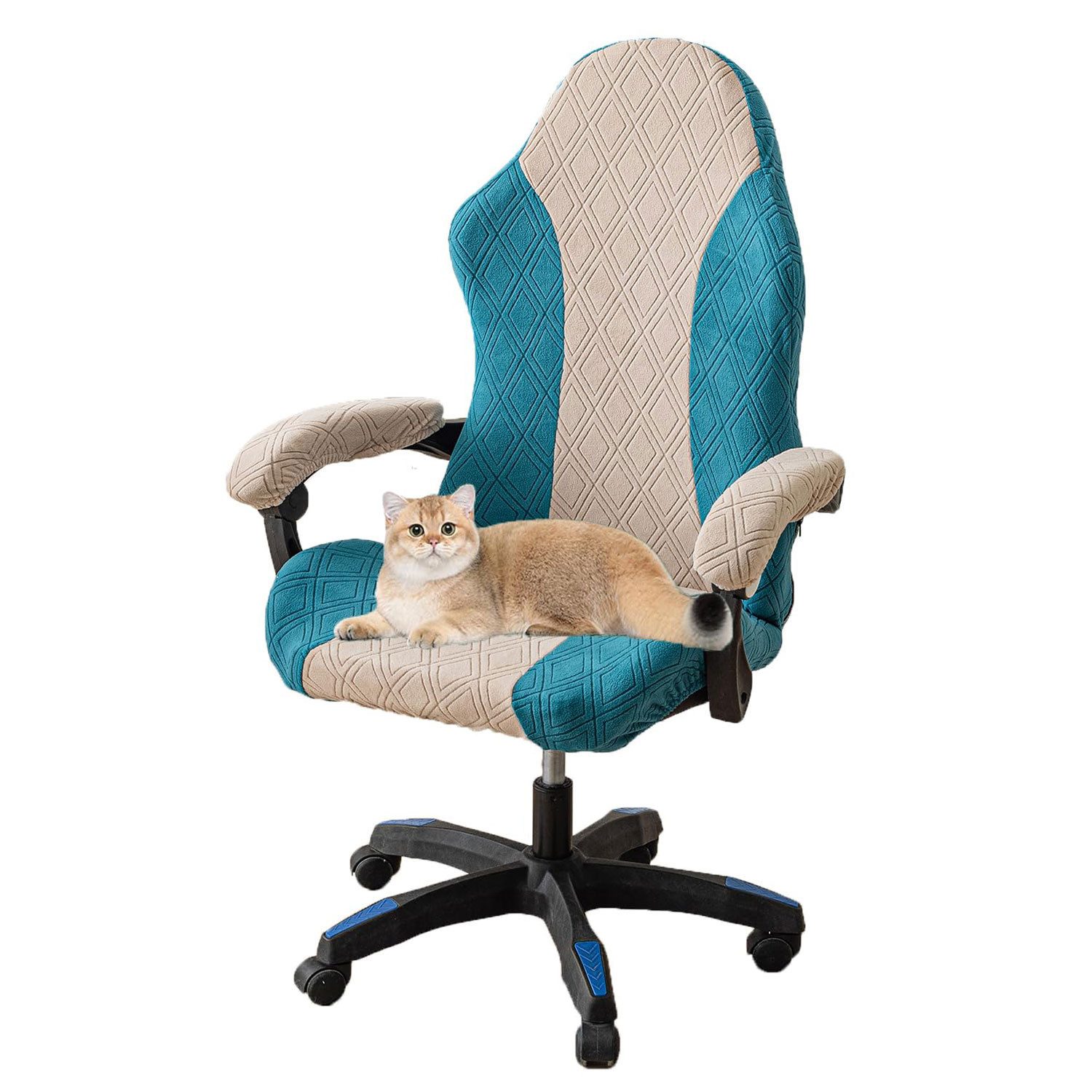 All-inclusive-Bürostuhlbezug, Elastischer Drehstuhlbezug, Farbblockierung Staubdichter Computerstuhlbezug mit Armlehnen