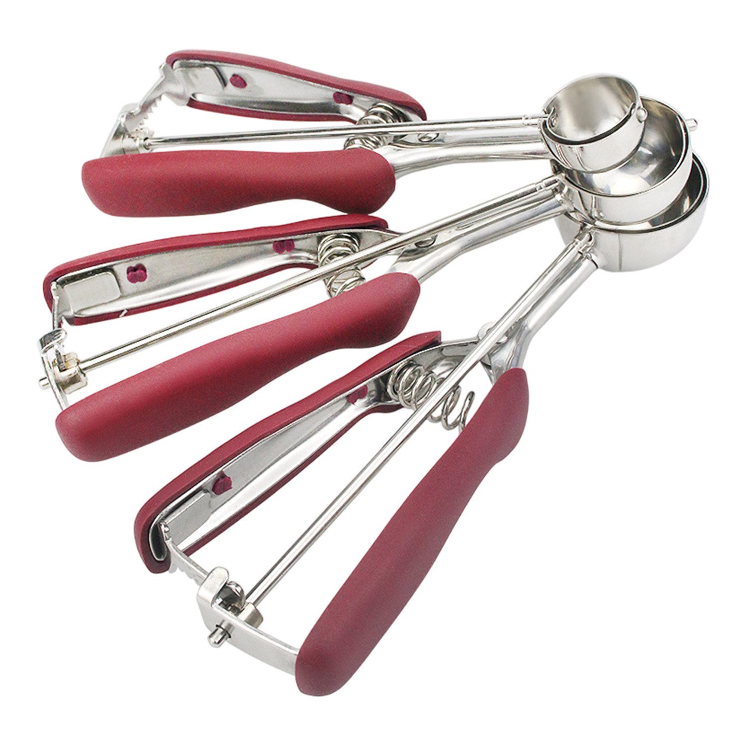 Praktisches Set mit drei unterschiedlichen Größen, ideal als Eisportionierer, Eiskugelportionierer und Eislöffel für gleichmäßige Kugeln bei Eiscreme, Sorbet oder Frozen Yogurt.
