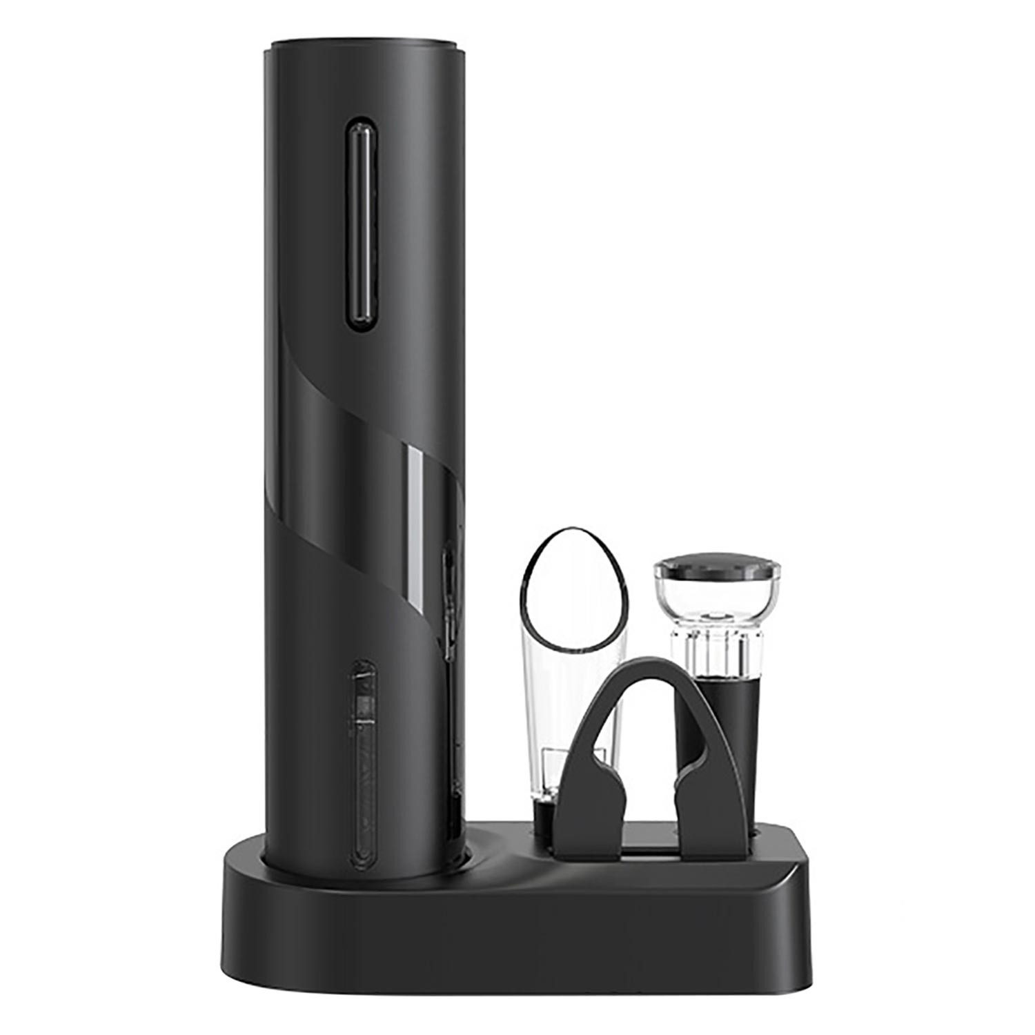 Lieferumfang | 1x Elektrischer Flaschenöffner 1x Folienschneider 1x Vakuum-Weinstopfen 1x Weinausgießer 1x Ablagefläche 1x USB-Ladekabel |