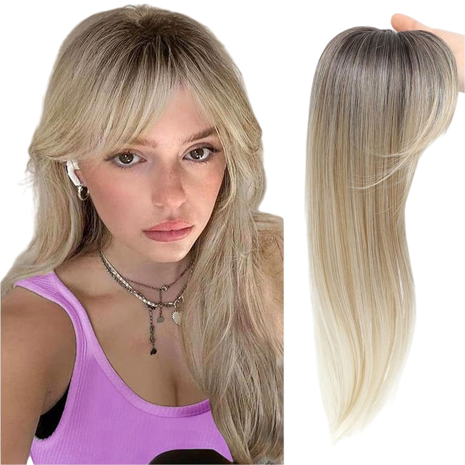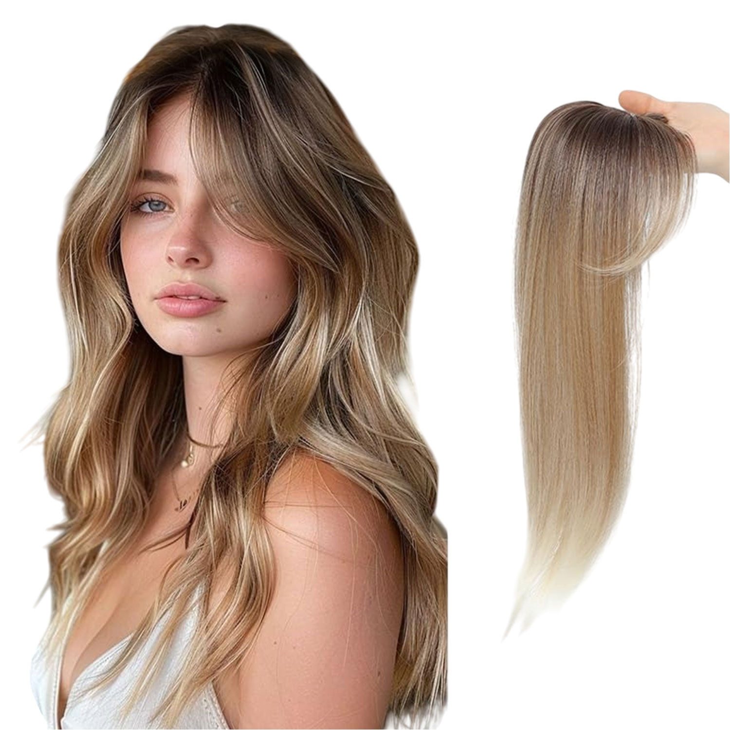 --Haar-Topper sind geeignet für leichten bis mäßigen Haarausfall am Scheitel oder Oberkopf. Wenn die Fläche größer ist, wird empfohlen, dass Sie eine Perücke wählen.