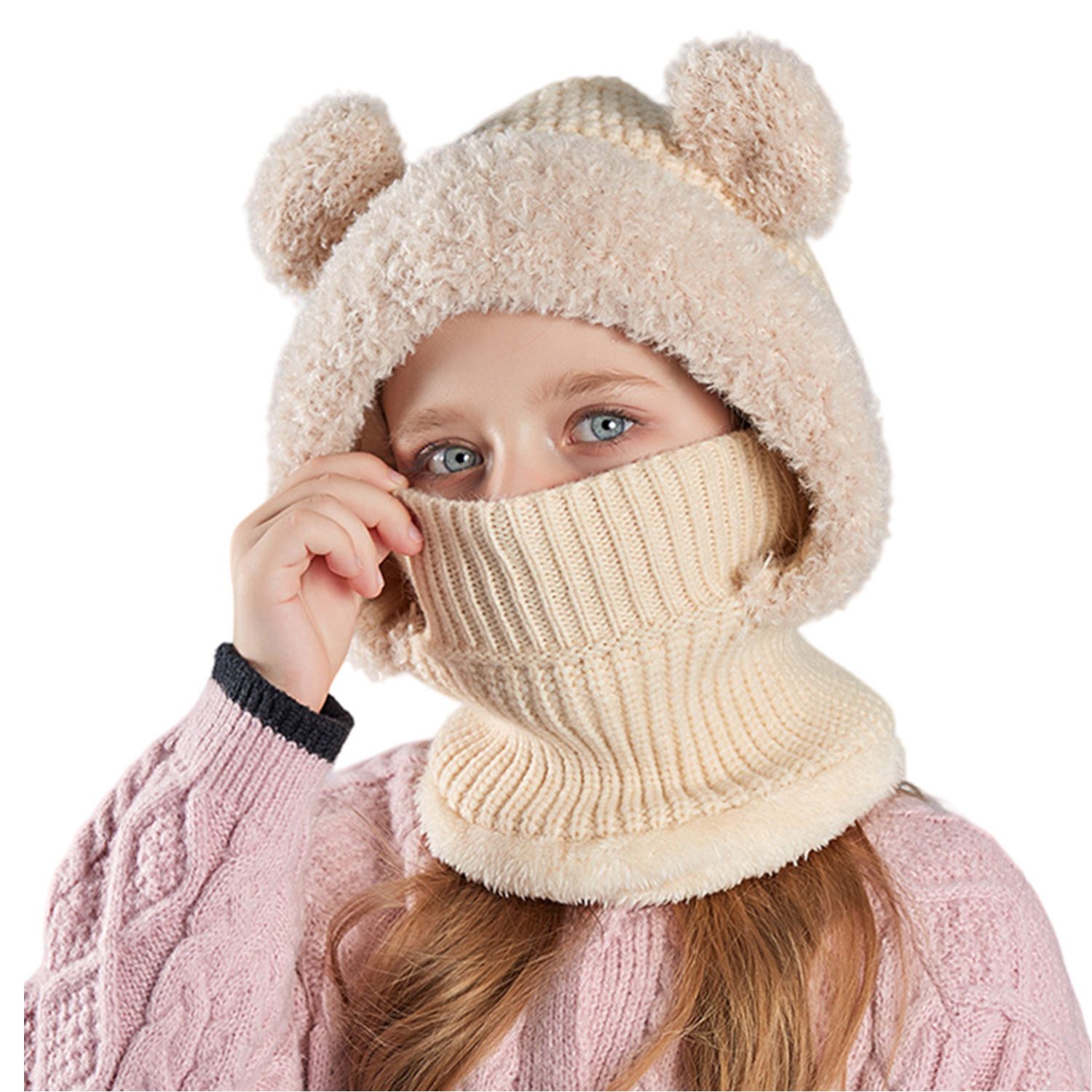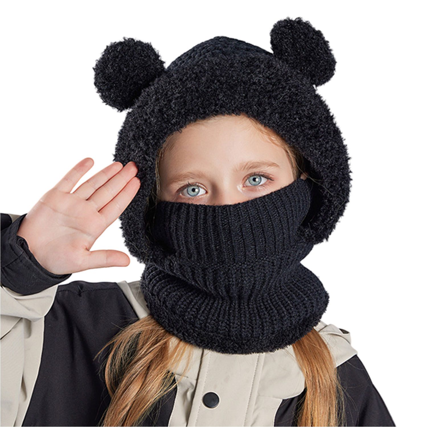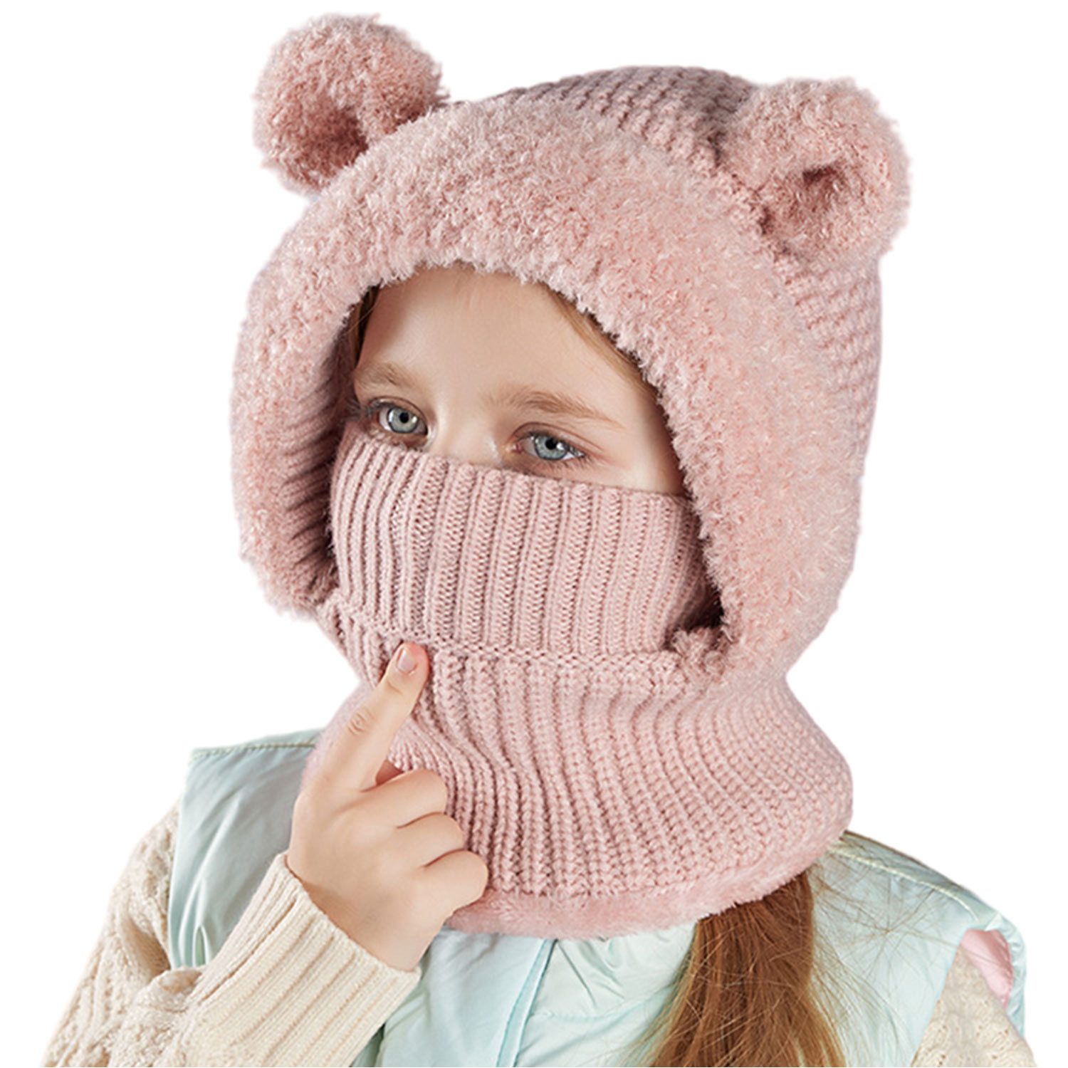 Strickmütze Schlupfmütze Mädchen Winter Mütze Schal Fleecefutter Warm Wintermütze Kindermützen Schlupfmütze 2 in 1 Wintermütze mit Samtfutter Earflap Mütze