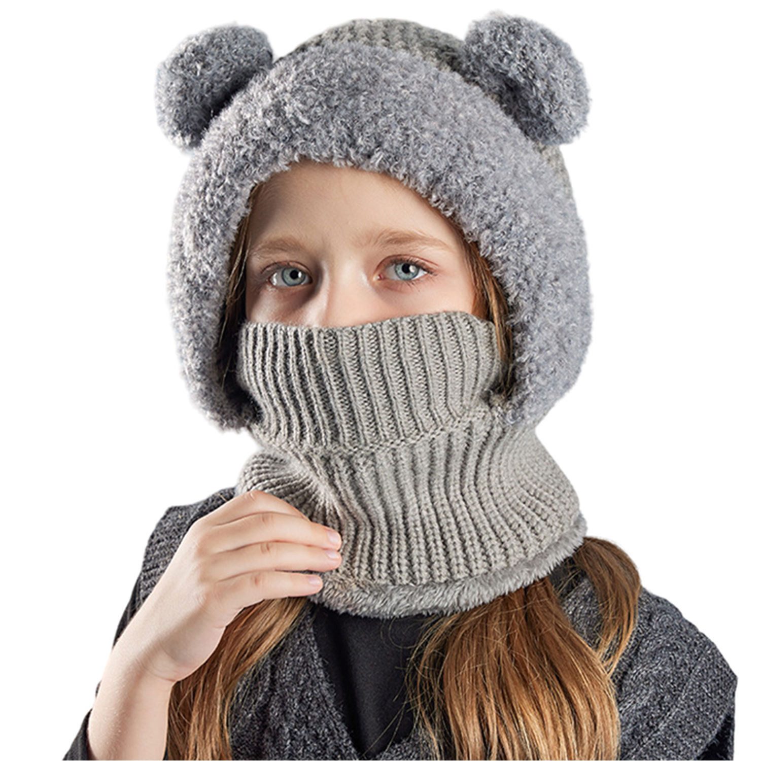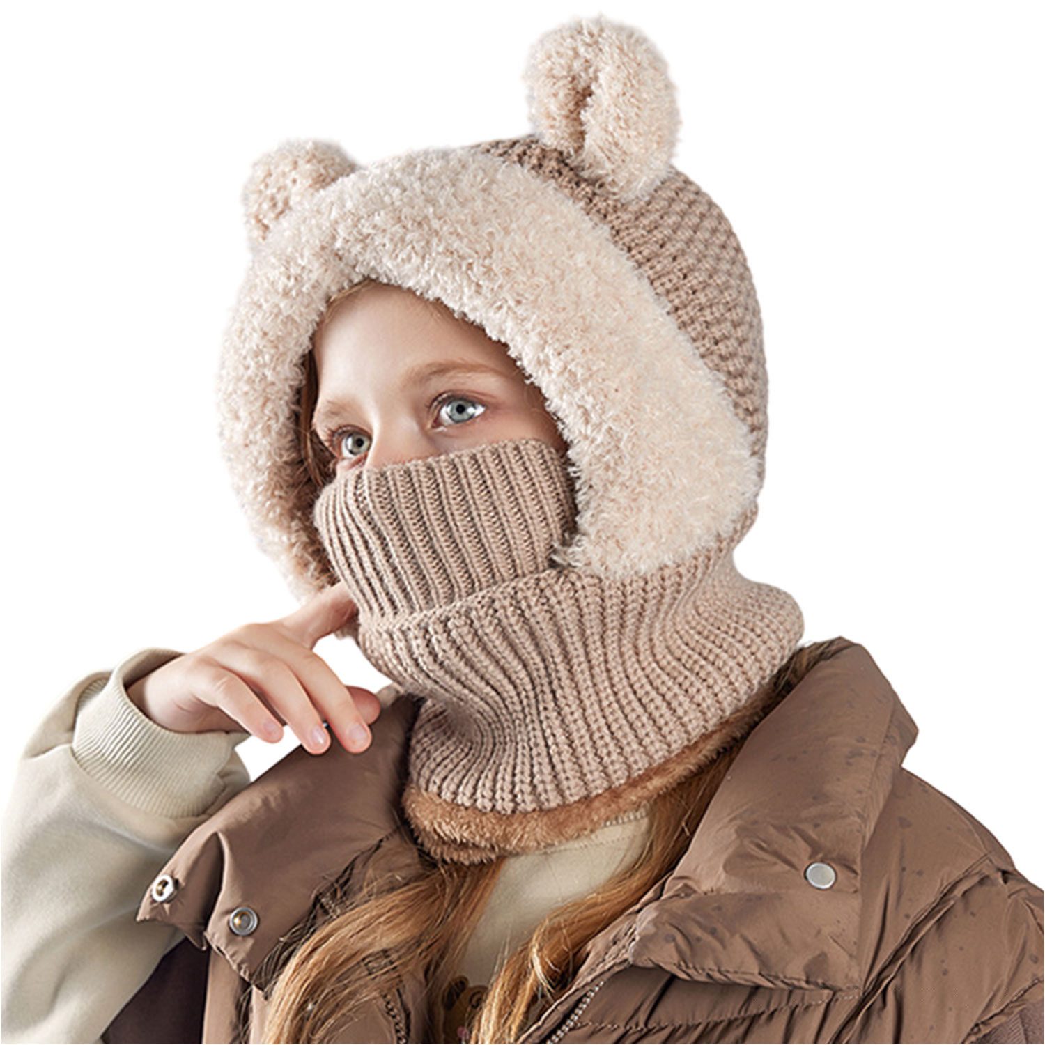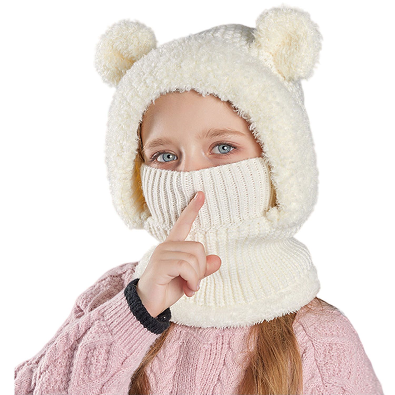 Strickmütze Schlupfmütze Mädchen Winter Mütze Schal Fleecefutter Warm Wintermütze Kindermützen Schlupfmütze 2 in 1 Wintermütze mit Samtfutter Earflap Mütze