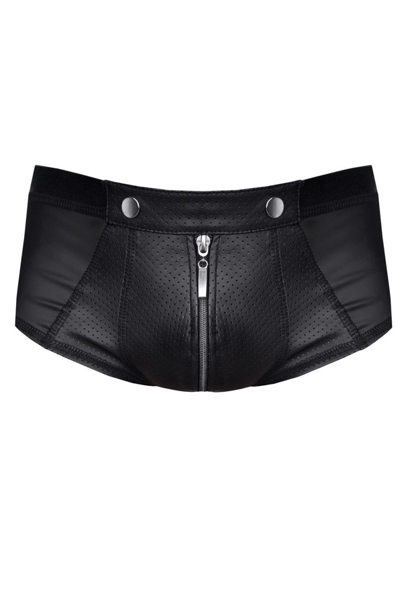 Shorts aus 360 Wetlook-Stoff und dekorativem, perforiertem Wetlook. Durch die elastischen Eigenschaften dieses Stoffes passen sich die Shorts perfekt dem Körper an und betonen das attraktive Aussehen des Gesäßes. Oben befindet sich ein breites, angenehm anzufassendes, schwarzes Gummiband. Auf der Vorderseite fallen der dekorative, perforierte Wetlook und die beiden Druckknöpfe in Silbermetallic auf. Ein weiteres erwähnenswertes Detail ist der dunkle Reißverschluss vorne und hinten, der von beiden Seiten geöffnet werden kann. Es regt die Kreativität beim intimen Spielen an. Das einzigartige Design der Shorts und die unterschiedlichen Einsatzmöglichkeiten werden von allen geschätzt, denen Aufregung und ein unkonventioneller Look wichtig sind. Der Artikel ist in einer Box mit Bild verpackt. Pflegehinweis : 30Grad Handwäsche Farbe : schwarz Material : 95% Polyester / 5% Elasthan erhältliche Größen : S, M, L, XL, XXL