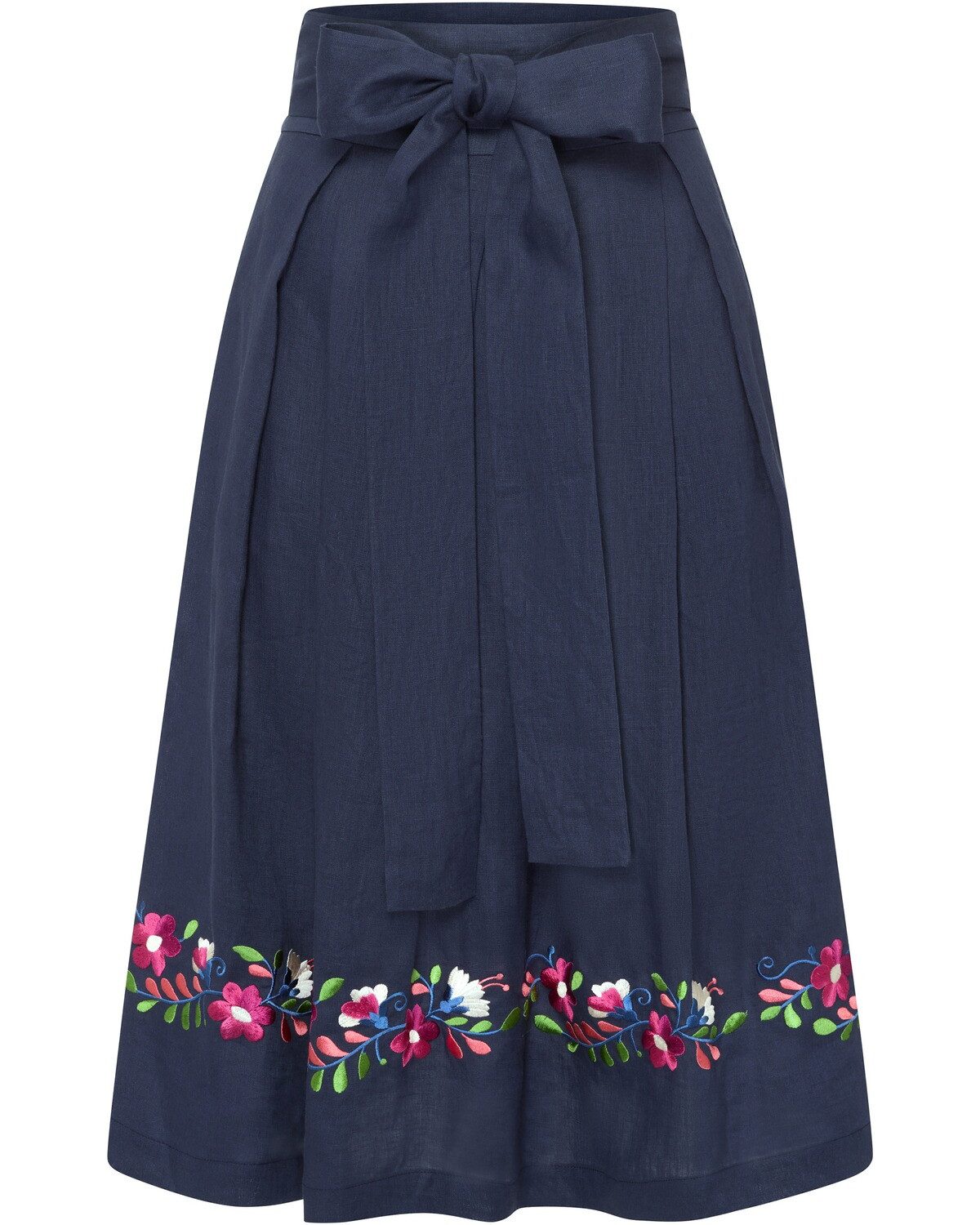 Der Leinenrock von REITMAYER verkörpert den zeitlosen Charme des Landhausstils und sorgt für einen frischen, lässigen Look. Hergestellt aus hochwertigem Leinen, bietet er ein angenehmes Tragegefühl. Der separate Bindegürtel ermöglicht eine individuelle Anpassung der Taille und setzt gleichzeitig einen modischen Akzent. Besonders hervorzuheben ist die bunte Blumenstickerei am Rocksaum, die dem Design eine verspielte Note verleiht und an die Schönheit der Natur erinnert. Die Kellerfalten im Vorder- und Rückenteil sorgen für eine elegante Silhouette und gewährleisten gleichzeitig Bewegungsfreiheit. Diese Details machen den Rock zu einem vielseitigen Kleidungsstück, das sich sowohl für den Alltag als auch für besondere Anlässe eignet. Praktische Eingrifftaschen bieten zusätzlichen Komfort und Funktionalität, während der Reißverschluss in der Seitennaht eine nahtlose Optik gewährleistet. Der Leinenrock von REITMAYER ist somit nicht nur ein stilvolles, sondern auch ein durchdachtes Kleidungsstück, das in keiner Garderobe fehlen sollte. Oberstoff: 100% Leinen