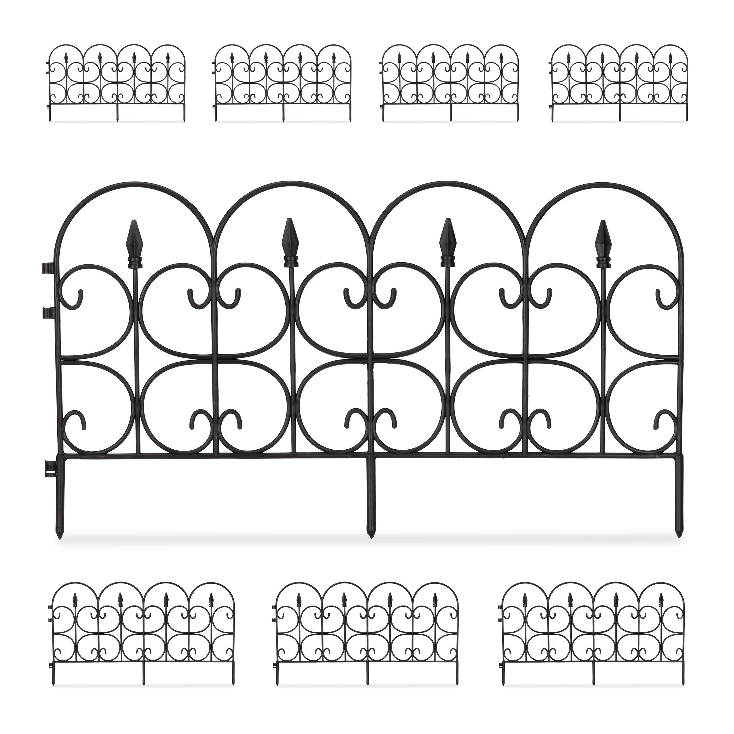 Niedriger Steckzaun aus Kunststoff - Mit Beetumrandung für klare Abgrenzungen im Garten sorgen - Niedrige Höhe ideal für Blumenbeete, Rabatten und Rasenflächen - Bögen mit Fleur-de-Lis-Verzierungen zur dekorativen Gartengestaltung - Beetumzäunung mit den Erdspießen bequem in die Erde stecken - Schwarzer Gartenbeetzaun aus robustem Kunststoff - Blumenzaun nach Belieben erweitern und individuell aufstellen