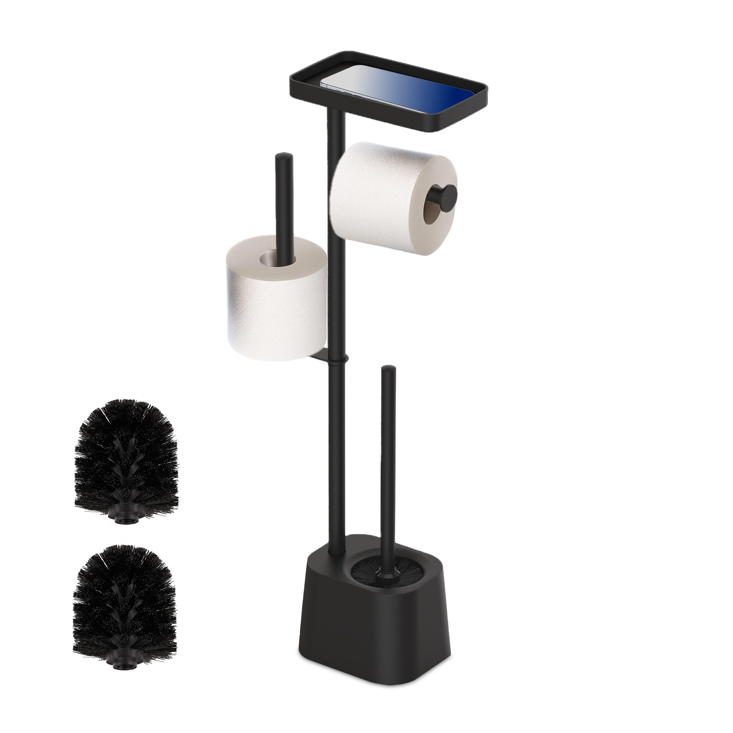 Detailmaße der Toilettengarnitur - Довжина Klobürste: ca. 36 cm - Bürstenkopf H x D: ca. 9 x 8 cm - Innengewinde D: ca. 1,1 cm - Ersatzrollenhalter H: ca. 22 cm - Ablage B x T: ca. 19 x 11 cm Stehender Klopapierhalter mit WC-Bürste - Praktische Kombination aus Klopapier- und Bürstenhalter - Hygienisch wechselbarer Bürstenkopf - Inkl. 2 Ersatzköpfen - Dank Reserverollenhalter ist die nächste Rolle stets griffbereit - Mit Ablage für Smartphone, feuchtes Toilettenpapier uvm. - Schwere Bodenplatte sorgt für einen sicheren Stand - Moderner Klobürstenhalter aus Metall und Kunststoff - Freistehende Toilettenbürstengarnitur für Bad oder Gäste-WC Lieferumfang - 1x WC-Standgarnitur in Einzelteilen - 2x Ersatzbürstenkopf - Mit Anleitung und Montagematerial - Dekoartikel sind nicht im Lieferumfang enthalten
