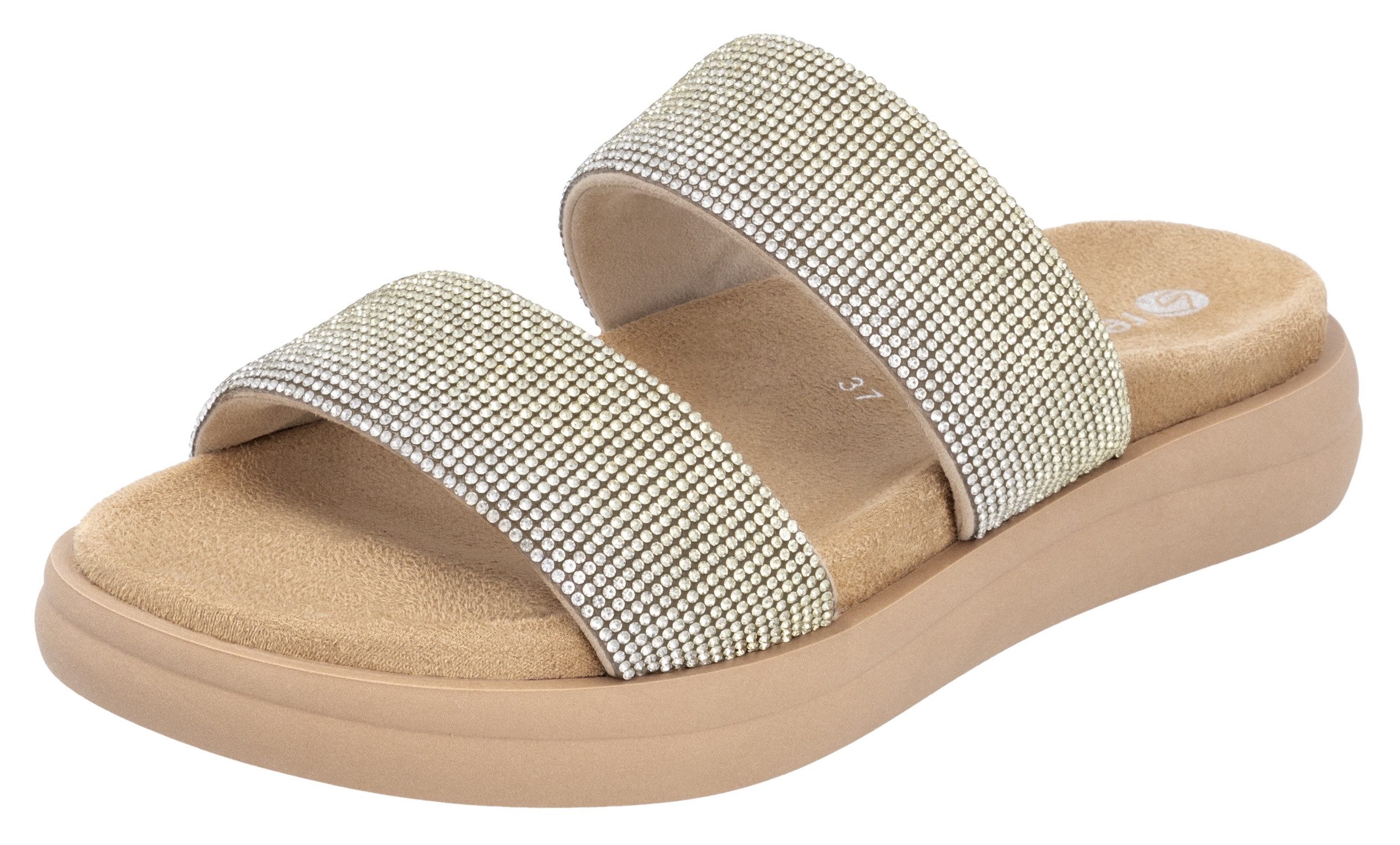 Besondere Merkmale | , Plateau, Sommerschuh, Schlappen mit funkelenden Strasssteinen |