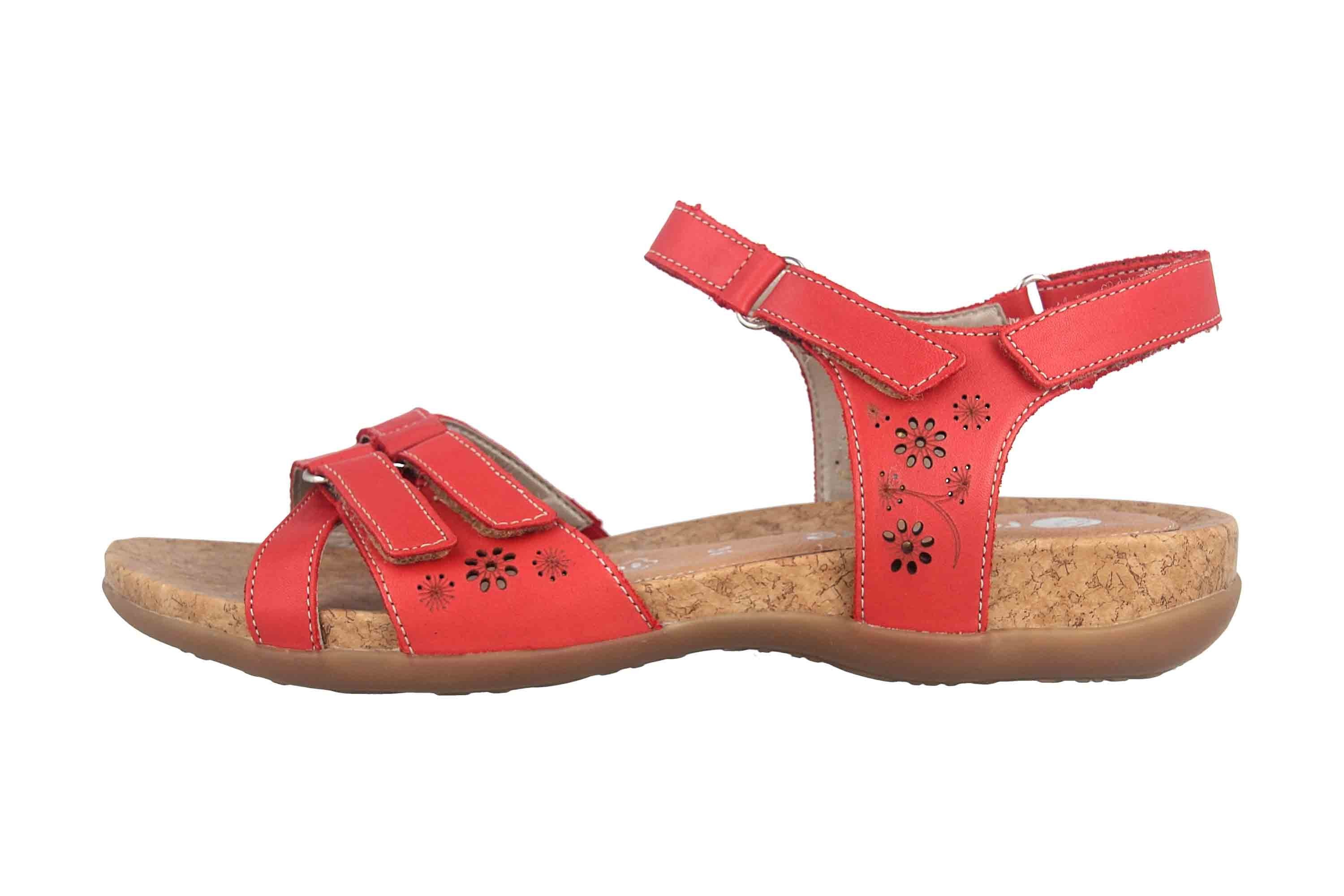 Bei diesem formschönen Schuh der Marke Remonte handelt es sich um ein Modell aus der Kategorie Sandalen. Diese Damenschuhe in der Farbe Rot überzeugen durch ein klares Design und unterstreichen die aktuelle Schuhmode. Schuhe von Remonte lassen sich perfekt mit dem urbanen Modegeist kombinieren und verleihen jedem modernen aber auch einem klassisch-sportivem Outfit den passenden Schliff. Das Außenmaterial bei diesem Schuh, Modell R3269-33, wurde aus Glattleder hergestellt, als Innenmaterial wurde Synthetik verwendet. Bei diesen formschönen Damenschuhen kann als Weite F-Weite berücksichtigt werden. Die TR-Sohle sorgt jederzeit für einen guten Auftritt und ein Keilabsatz mit einer Höhe von 3,5 cm sichert eine durch und durch harmonische Silhouette.