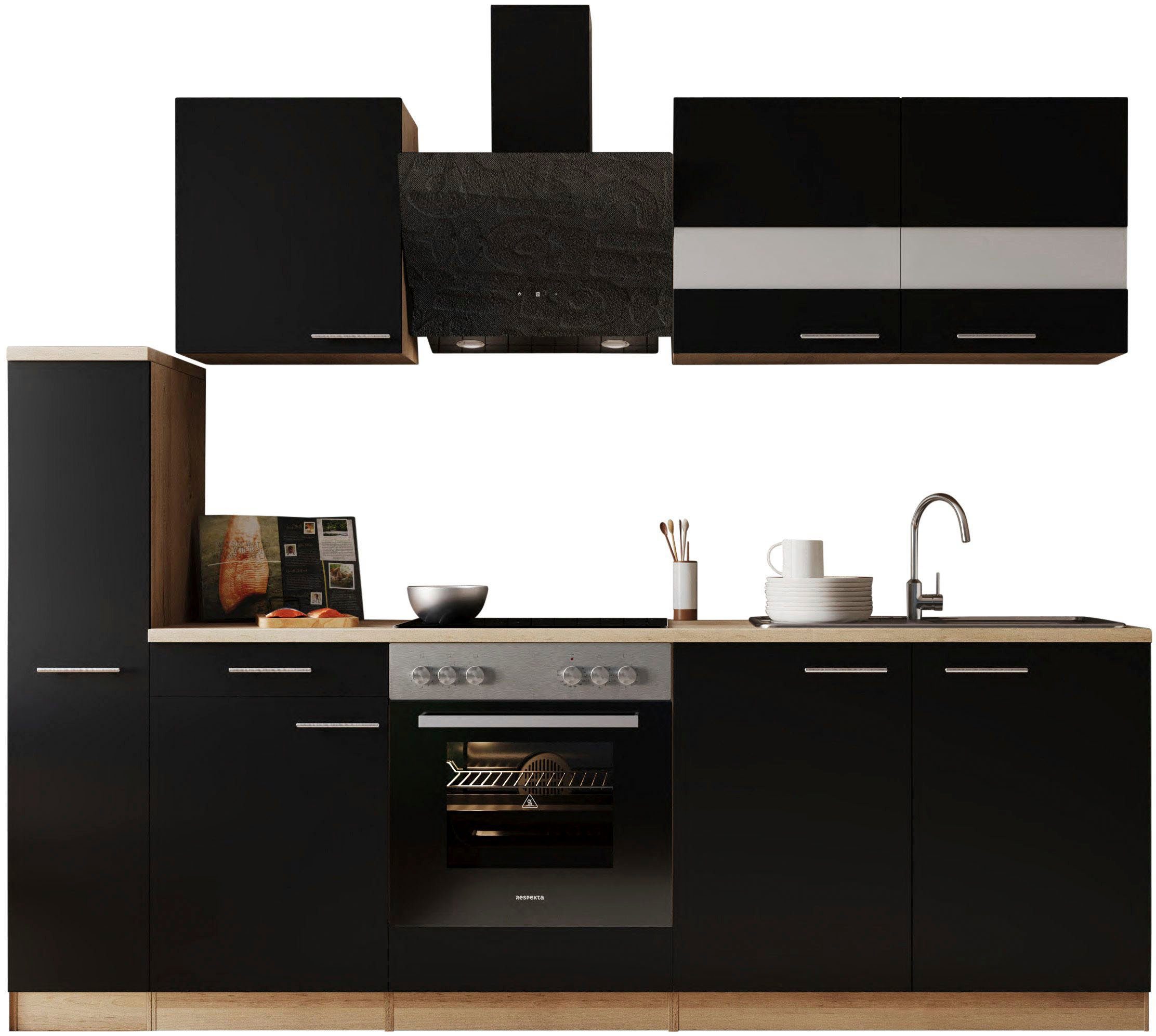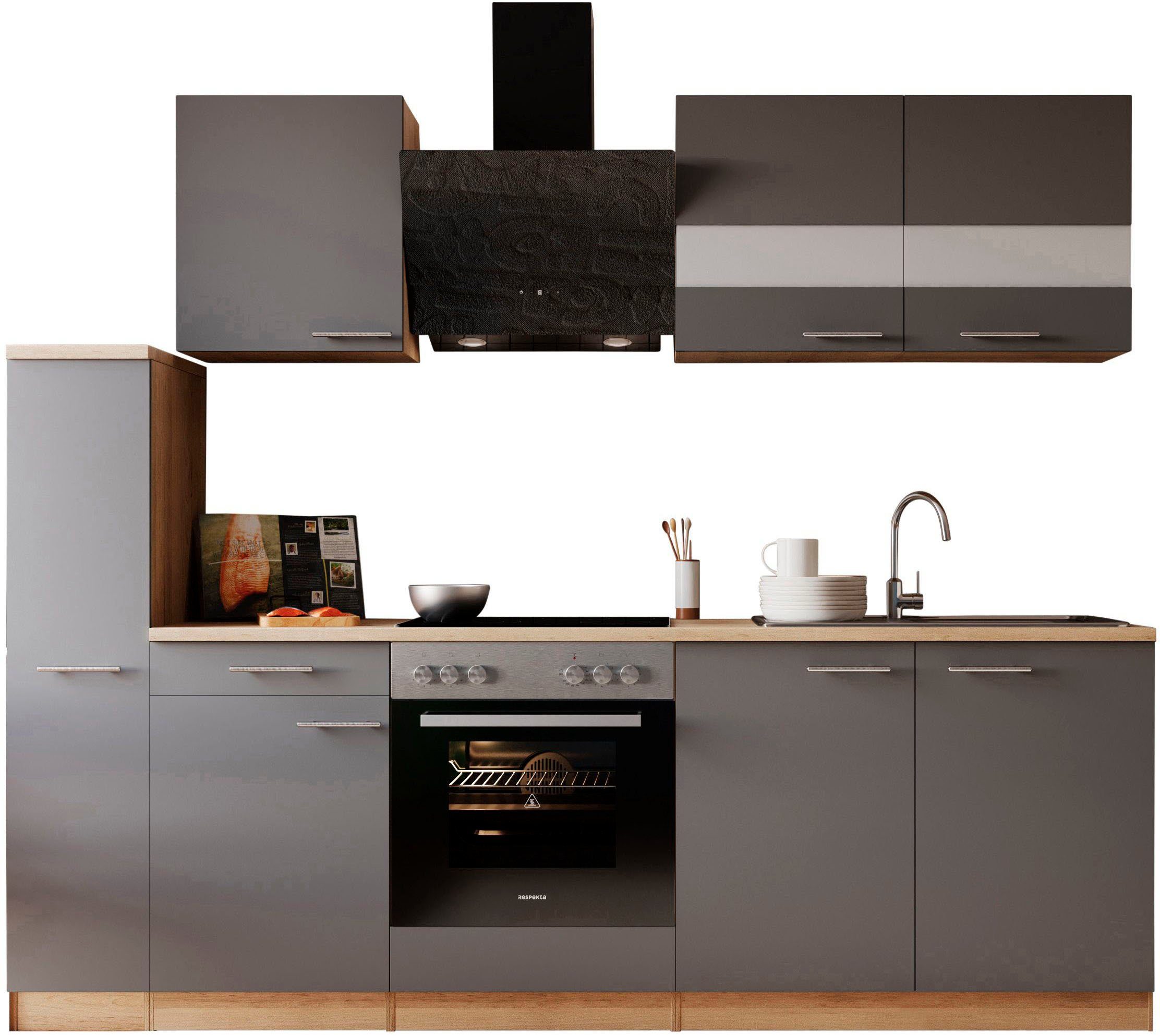 Ausstattung | Durchgehende Arbeitsplatte Seitenverkehrt stellbar Sockelhöhe nicht verstellbar inkl. Edelstahl-Einbauspüle, mit Abtropffläche mit E-Geräten |