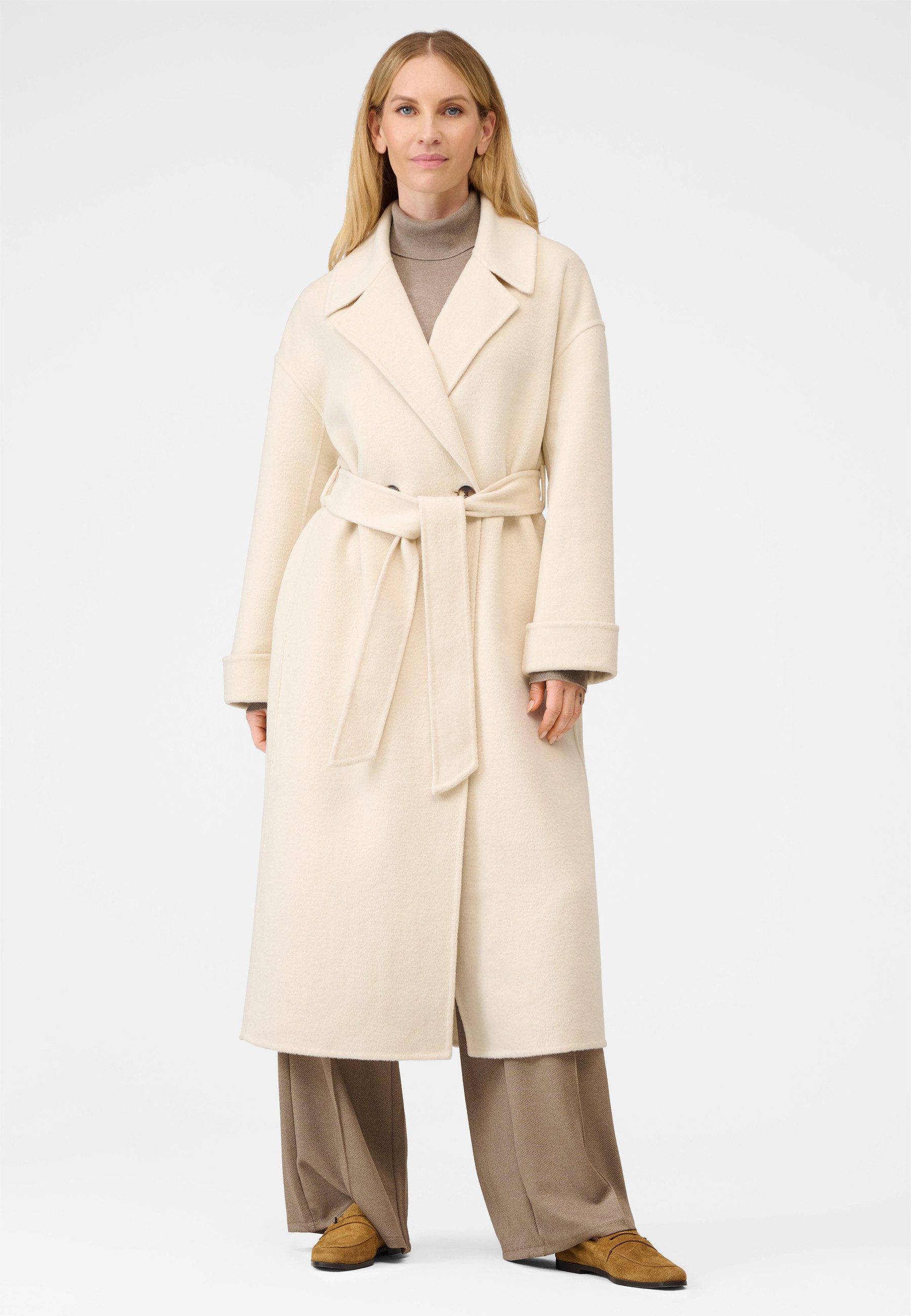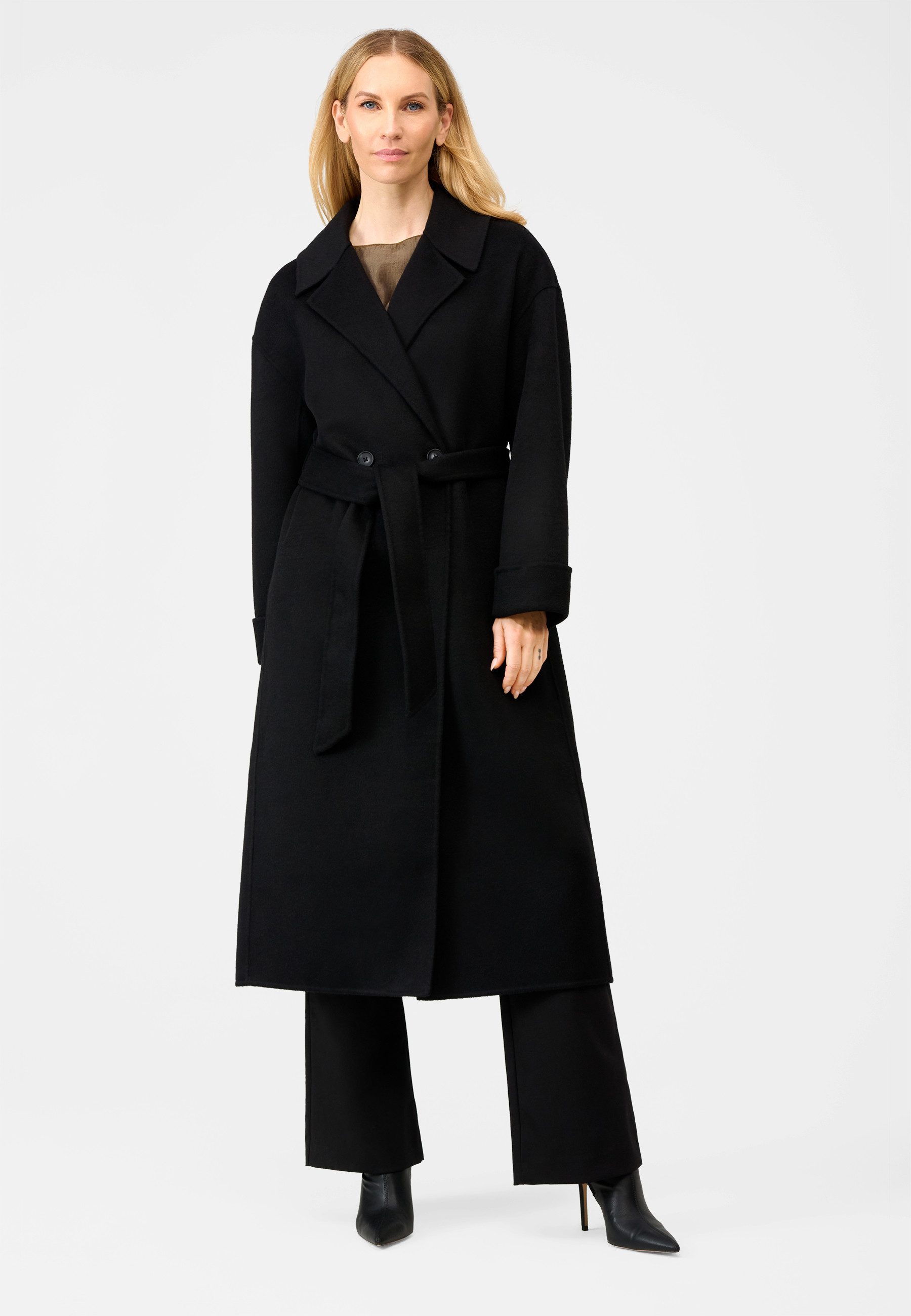 Mit dem RICANO Damen Wollmantel Elodie investieren Sie in ein wadenlanges Oversized Essential, das durch Double-Faced-Wool-Qualität, klare Linien und raffinierte Details überzeugt. Ein Must-have für Frauen, die auch an kühleren Tagen nicht auf Stil, Komfort und Eleganz verzichten möchten.