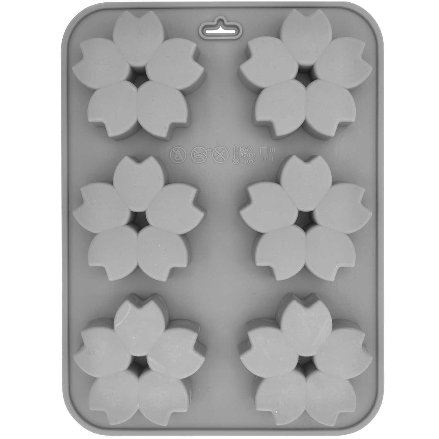 Silikon Gießform 'Kirschblüte', ca. 23,0 x 17,0 x 2,2 cm groß zum Ausgießen von 6 Blüten mit einem Ø von ca. 6,6 cm. Füllmenge insgesamt ca. 300 ml. Flexibles Silikon, das für Gips, Beton, Seife und mehr Kreativgießmassen geeignet ist. Die frühlingshaften Blüten sorgen für Hingucker, egal ob im Kosmetikbereich oder als Dekoration. Die Gießform kann in der Spülmaschine gereinigt werden und ist von -40 bis +230 °C frost- und hitzebeständig.