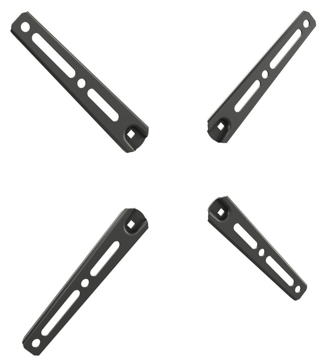 Mit diesen Adaptern bekommen Sie passende Verlängerungs-Möglichkeiten. Folgende Abstände der Haltelöcher erweitern Sie in Millimetern von 100x100 auf 300x300 (sowie 100x200, 200x100, 200x200, 200x300, 300x200) oder von 200x200 auf 400x400mm (sowie 200x300, 300x200, 300x400, 400x300.) Achtung: 100x100mm auf 400x400mm sind mit diesem Modell nicht möglich!.
